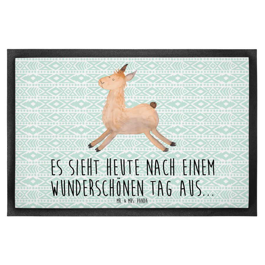 Fußmatte Lama Springen - 60 x 90 cm - mit Spruch - Aztekenblau