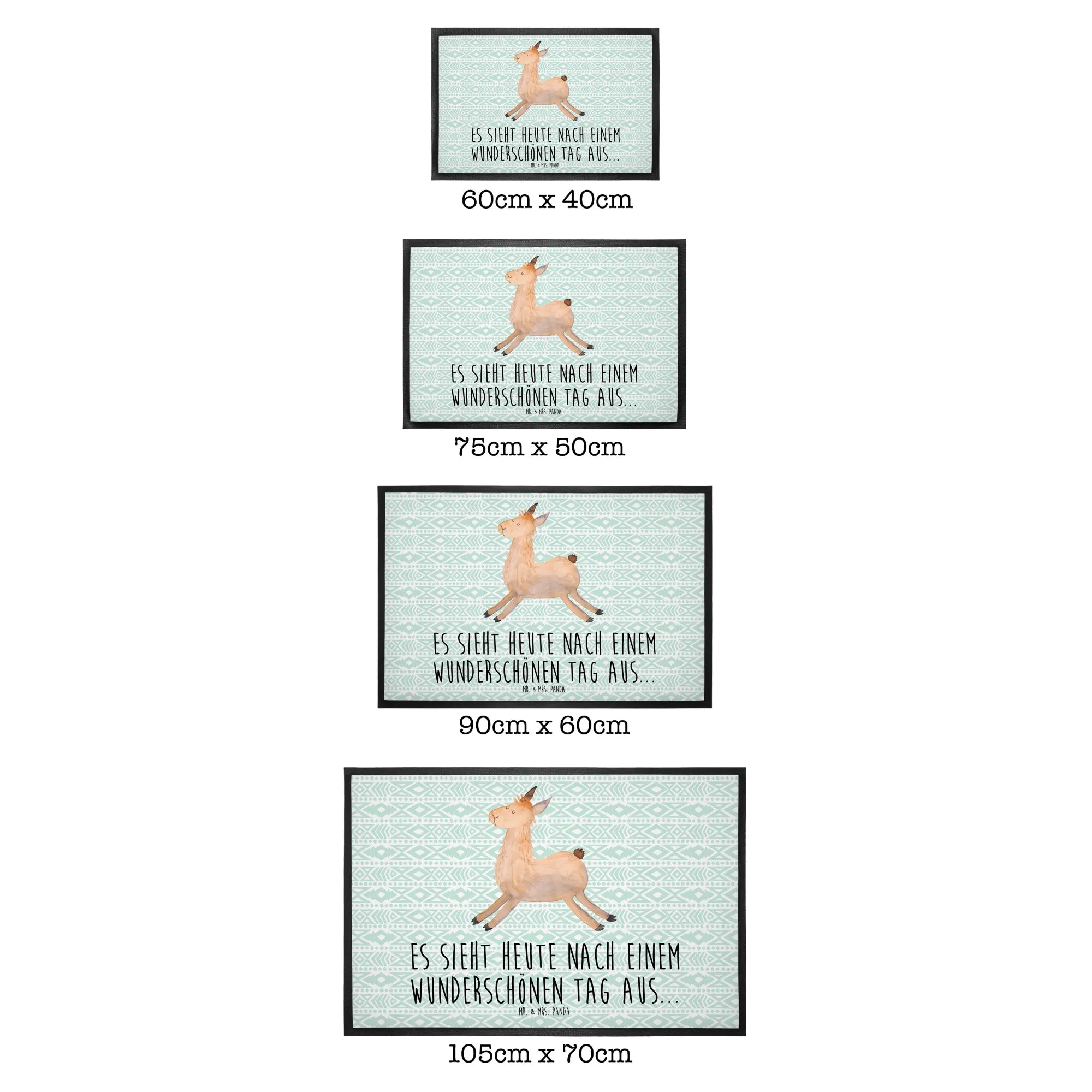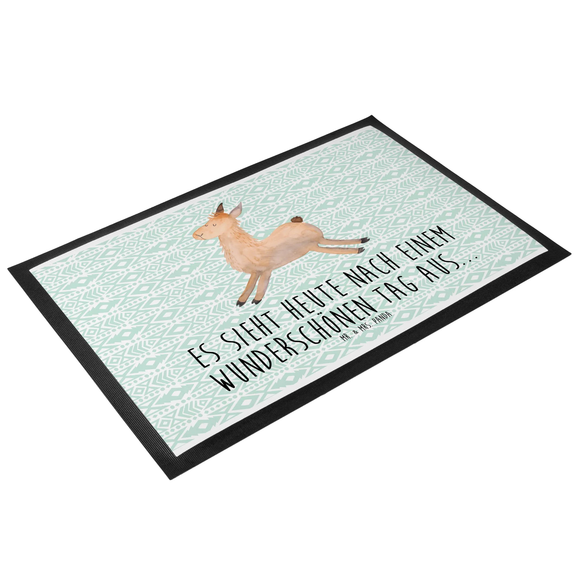 Hol dir die gute Laune und einen Hauch von Freude nach Hause mit der "Lama springend" Fußmatte von Mr. & Mrs. Panda – denn es sieht heute nach einem wunderschönen Tag aus!