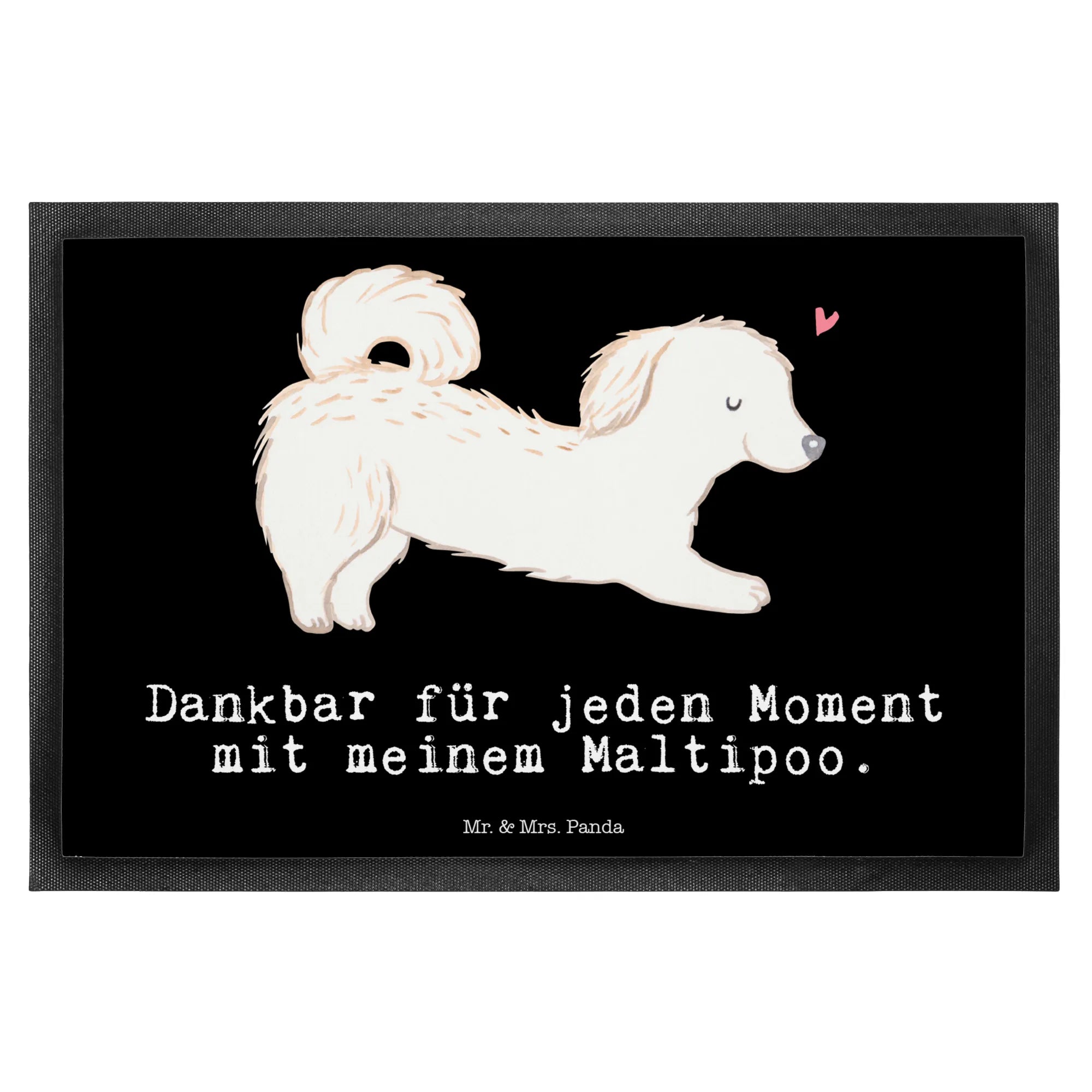 Das schlichte, schwarze Design sorgt dafür, dass die Fußmatte in jedes Zuhause passt, während der Spruch „Dankbar für jeden Moment mit meinem Maltipoo“ für ein Lächeln sorgt. Diese Matte ist also nicht nur eine praktische Lösung, sondern auch ein originelles Stück Deko und Ausdruck Deiner Tierliebe. Wenn Du also auf der Suche nach einer tollen Fußmatte für innen oder außen, einer Matten für den Eingangsbereich oder einem besonderen Geschenk für Hundebesitzer bist, dann ist die Mr. & Mrs. Panda Maltipoo Fußmatte genau das Richtige für Dich.