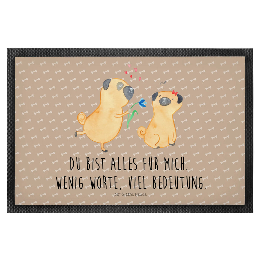 Schaffe eine einladende Atmosphäre und zeige deinen individuellen Stil. Die Fußmatte 'Mops verliebt' von Mr. & Mrs. Panda ist daher nicht nur praktisch, sondern auch ein wunderschöner Hingucker!