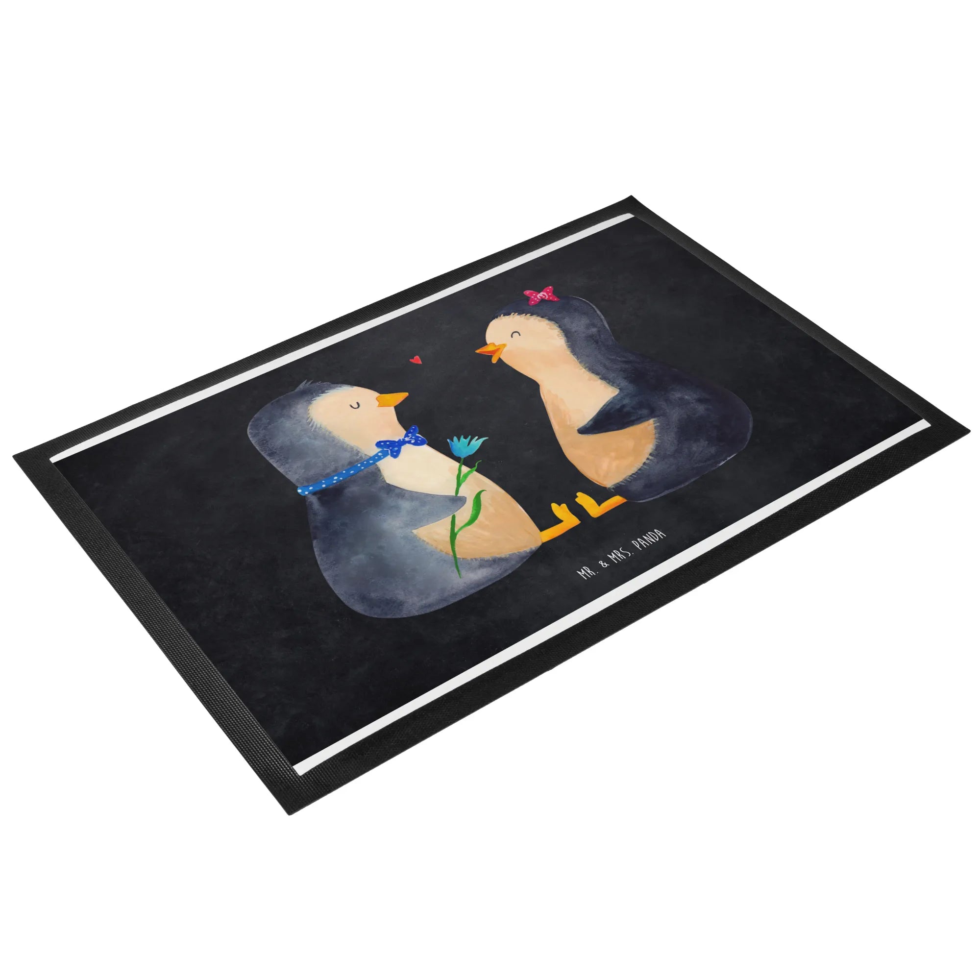 Die Fußmatte mit dem süßen Pinguin Pärchen von Mr. & Mrs. Panda ist der perfekte Begleiter für jedes Zuhause! Mit einem liebevoll gestalteten Motiv, das die Zweisamkeit und die große Liebe symbolisiert, bringt sie nicht nur Freude ins Haus, sondern sorgt auch für Sauberkeit.