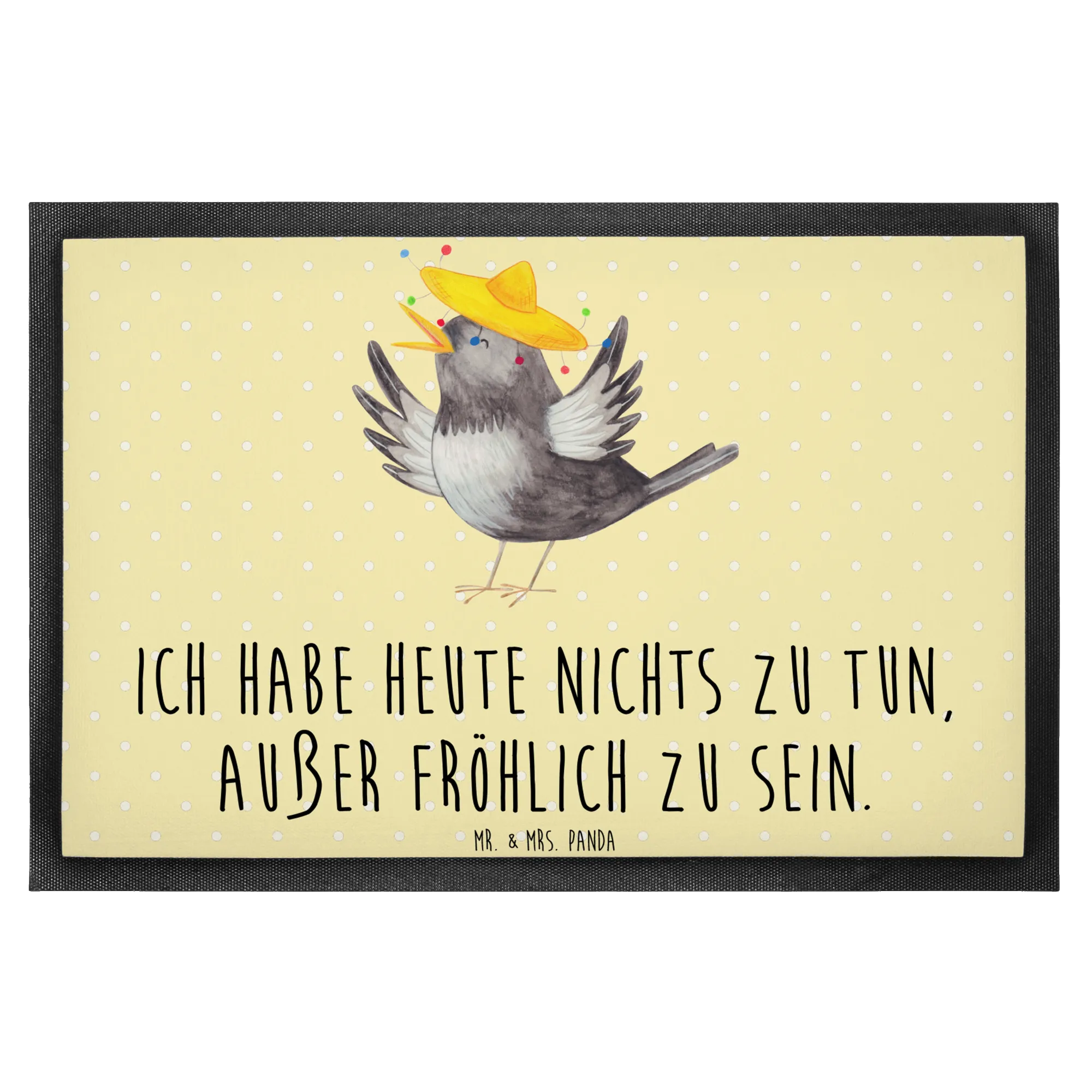 Die wunderschöne Fußmatte "Rabe mit Sombrero" aus der Small World Kollektion von Mr. & Mrs. Panda ist das perfekte Geschenk für alle, die gute Laune verbreiten möchten! Mit ihrem fröhlichen Design und dem liebevollen Spruch "Ich habe heute nichts zu tun, außer fröhlich zu sein." zaubert die matte direkt jedem ein Lächeln ins Gesicht.