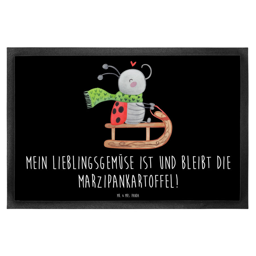 Die Fußmatte 'Smörle Rodeln' von Mr. & Mrs. Panda ist der perfekte Begleiter für die winterliche Zeit! ❄️ Mit einem strahlenden Lächeln und einem grünen Schal steht unser kleiner Marienkäfer bereit, um dich beim Betreten deines Zuhauses willkommen zu heißen.