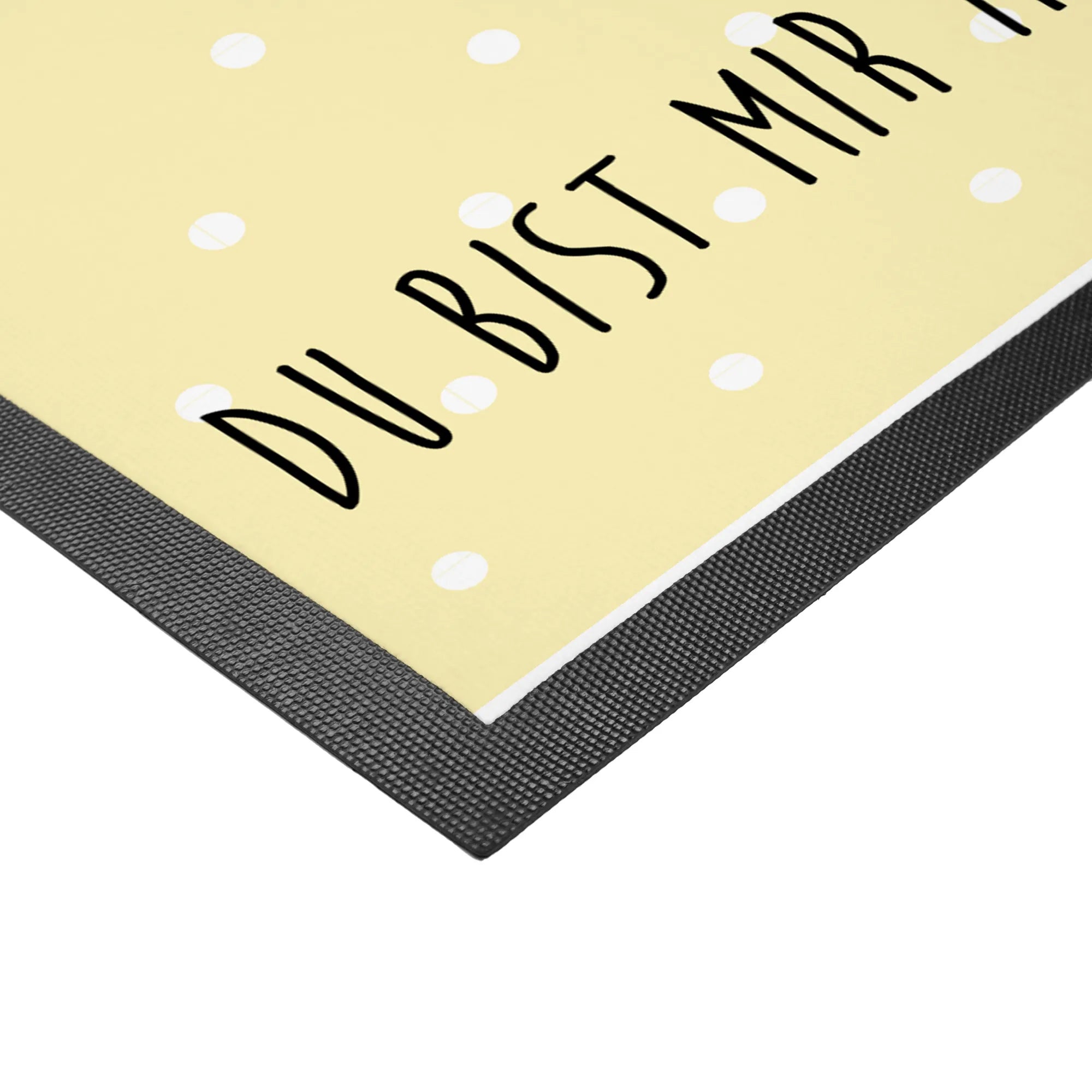 Der breitere Gummirand verhindert das Ausfransen und sorgt für extra Halt, während der ansprechende Gelbton die Dunkelheit und Kälte des Winters vertreibt und ein strahlendes Willkommen bietet. Diese Fußmatte ist nicht nur praktisch, sondern auch ein einzigartiges Liebesgeschenk für alle, die das Besondere im Leben schätzen.