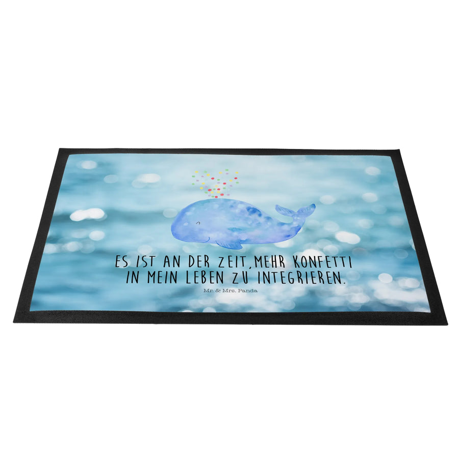 Die Fußmatte 'Wal Konfetti' aus der liebevollen Meerestiere-Kollektion von Mr. & Mrs. Panda ist das perfekte Geschenk für alle, die das Meer und seine charmanten Bewohner lieben. Mit einem freundlich lächelnden Wal, der schwerelos zwischen buntem Konfetti schwimmt, bringt diese Fußmatte nicht nur Freude, sondern auch Stil in deinen Eingangsbereich.