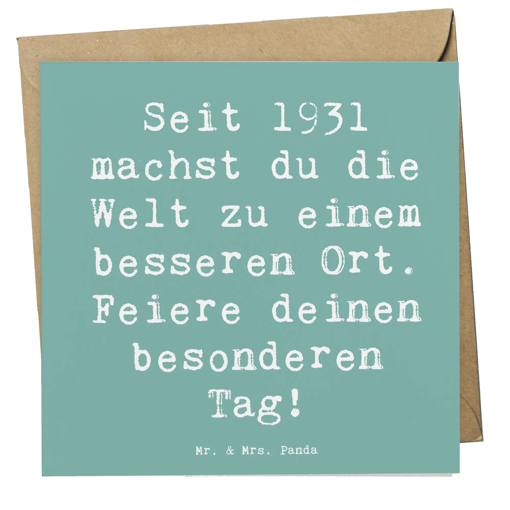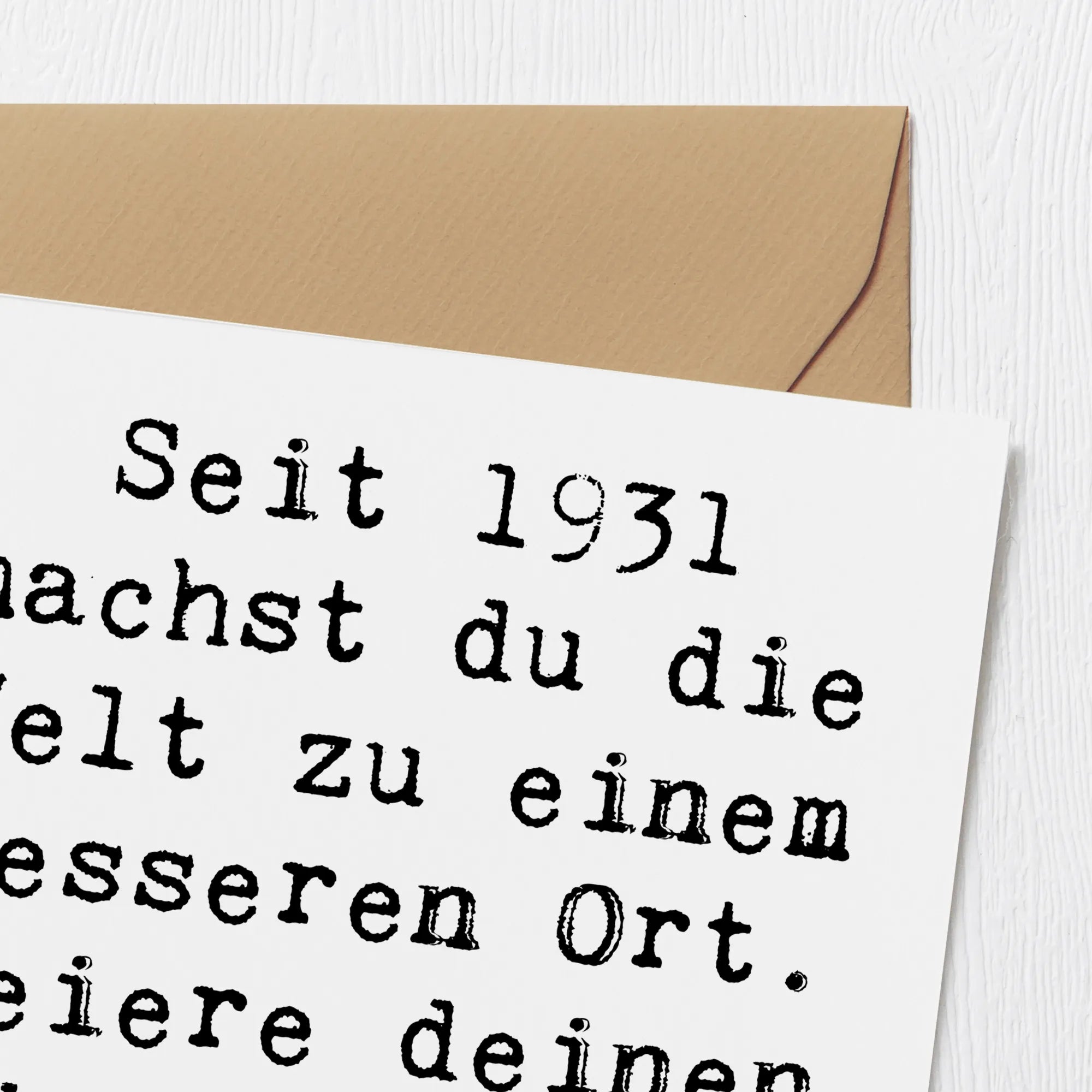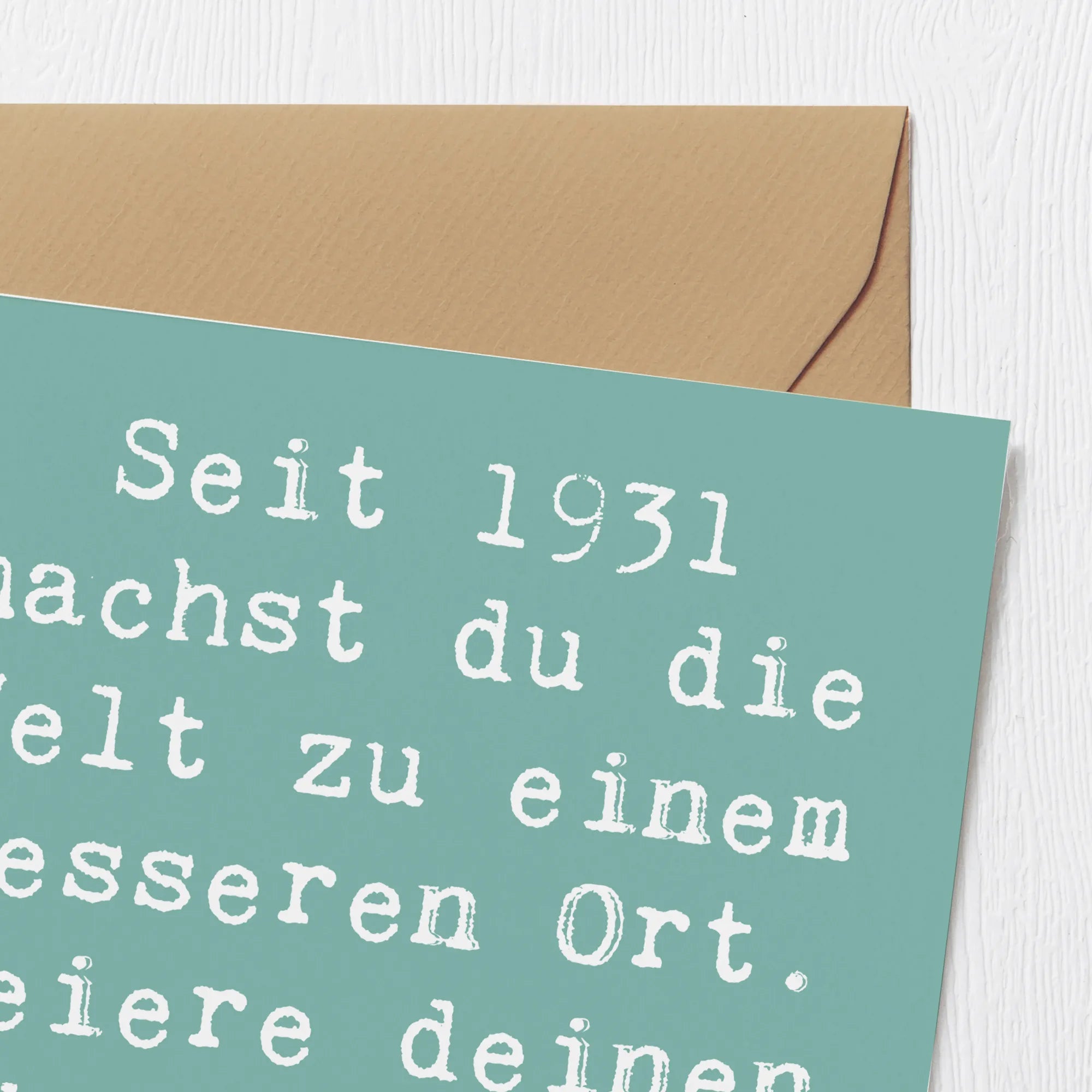Die Vorderseite ziert der liebevolle Spruch: 'Seit 1931 machst du die Welt zu einem besseren Ort. Feiere deinen besonderen Tag!' Diese Worte sind nicht nur inspirierend, sie laden auch ein, den Moment zu genießen und den besonderen Tag in vollen Zügen zu feiern.