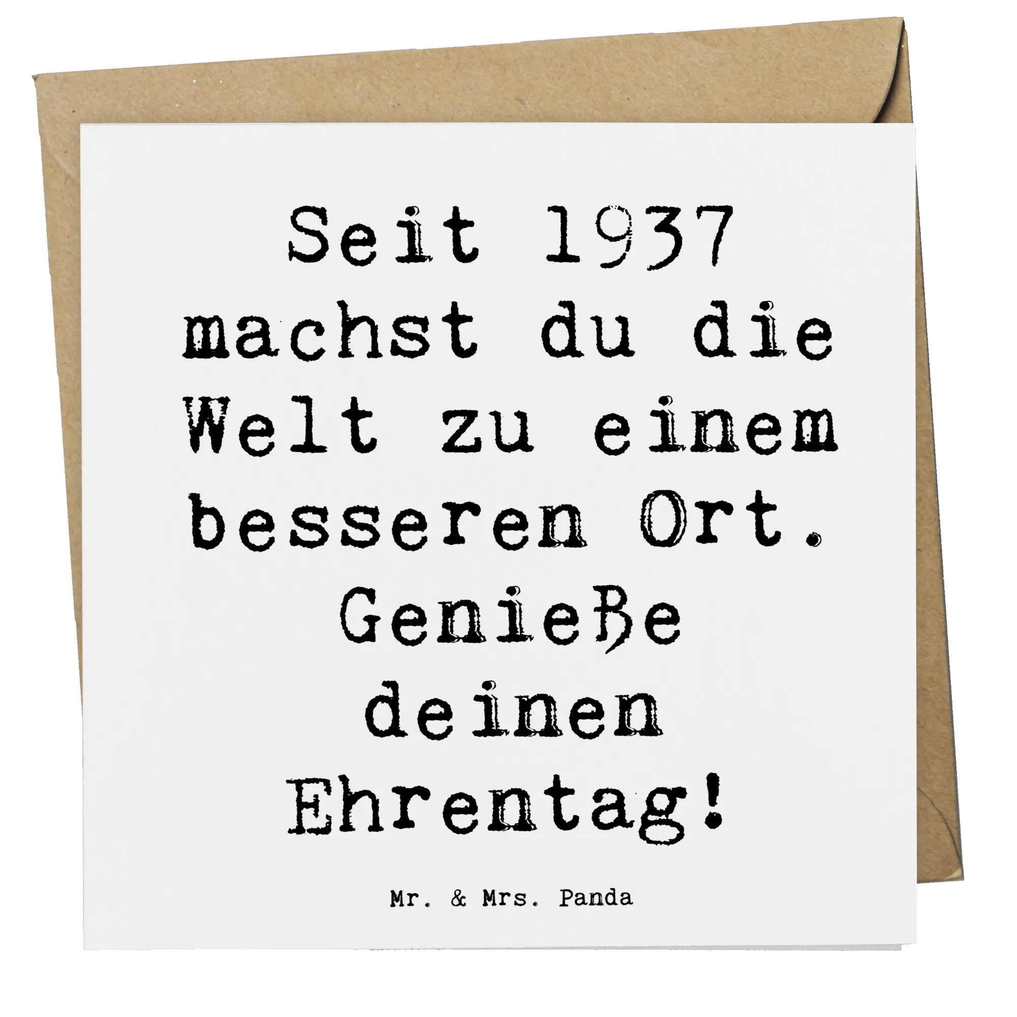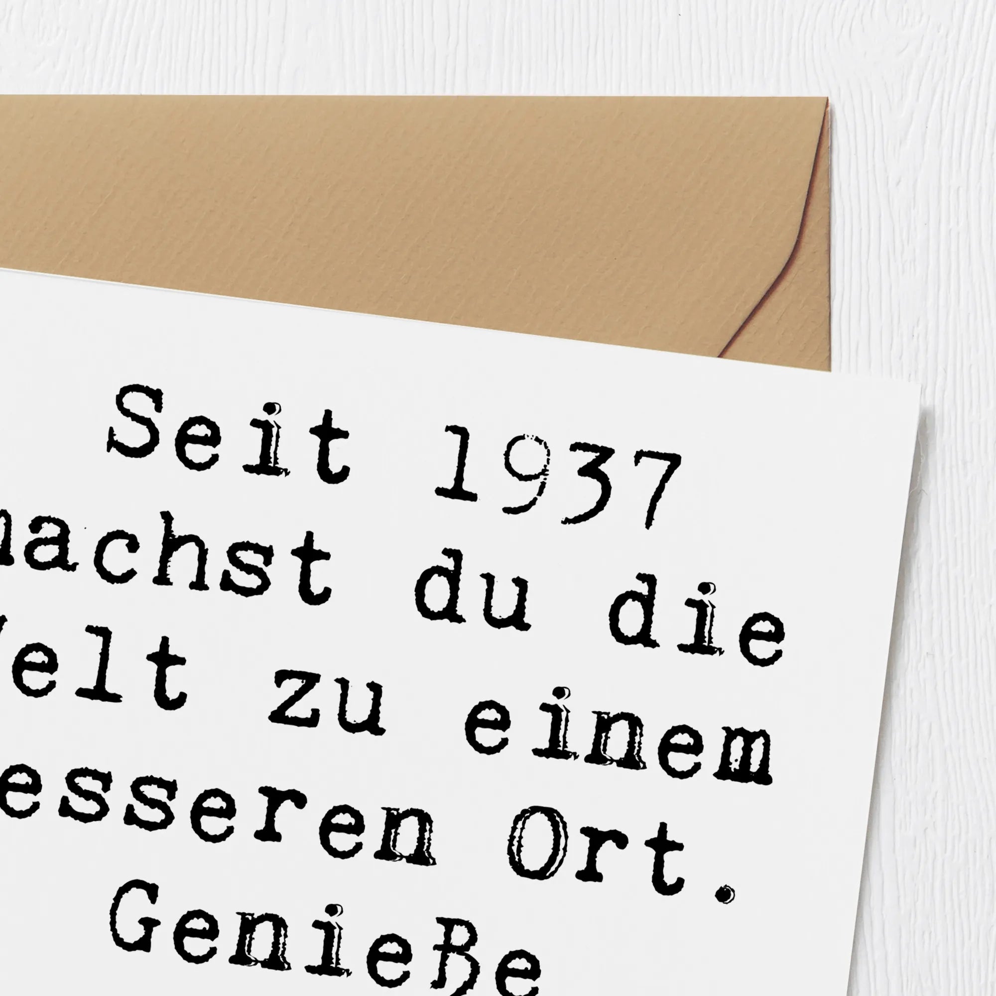 Mit einem wunderschönen, handgezeichneten Motiv und dem zauberhaften Spruch "Seit 1937 machst du die Welt zu einem besseren Ort. Genieße deinen Ehrentag!" bringt diese Karte ein Lächeln in jedes Gesicht. Perfekt geeignet, um Deine besten Wünsche für jemanden zu überbringen, der seinen Ehrentag in vollen Zügen genießen möchte.