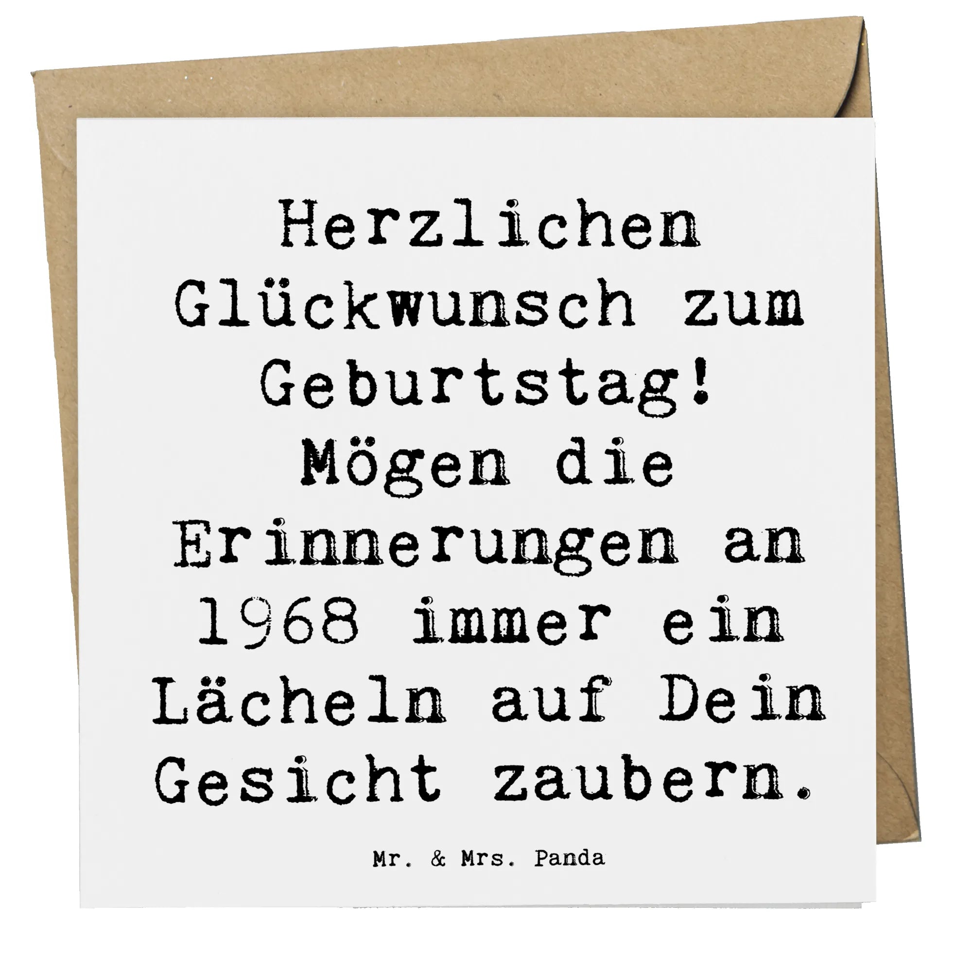 Die Deluxe Karte zum 50. Geburtstag aus der besonderen Kollektion „Geburtstags Geburtsjahr“ von Mr. & Mrs. Panda ist das ideale Geschenk für jeden, der 1968 geboren wurde. Diese hochwertige Klappkarte beeindruckt mit ihrem liebevoll gestalteten Motiv und dem herzlichen Spruch: "Herzlichen Glückwunsch zum Geburtstag! Mögen die Erinnerungen an 1968 immer ein Lächeln auf Dein Gesicht zaubern." Sie ist perfekt, um persönliche Grüße und Glückwünsche auszudrücken.