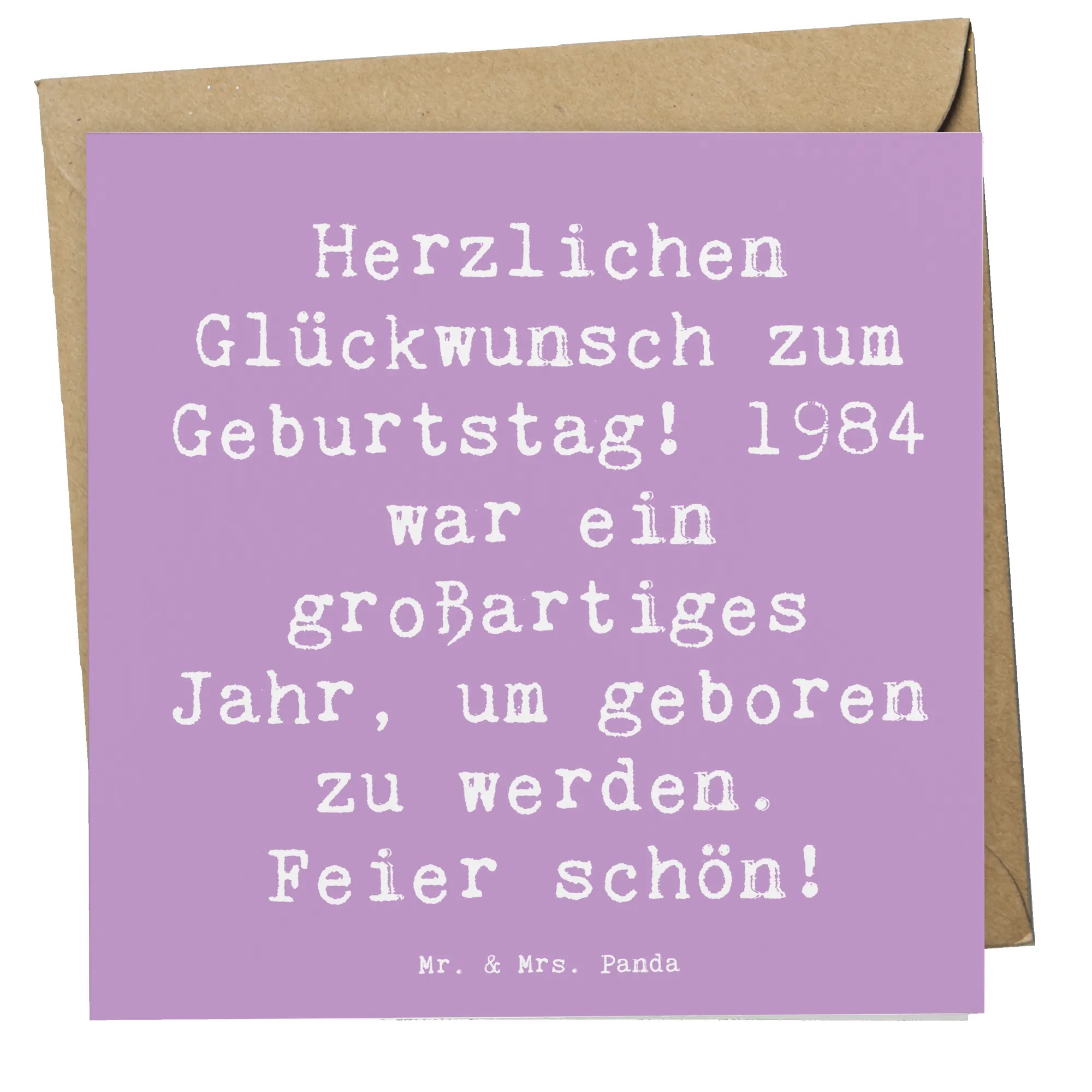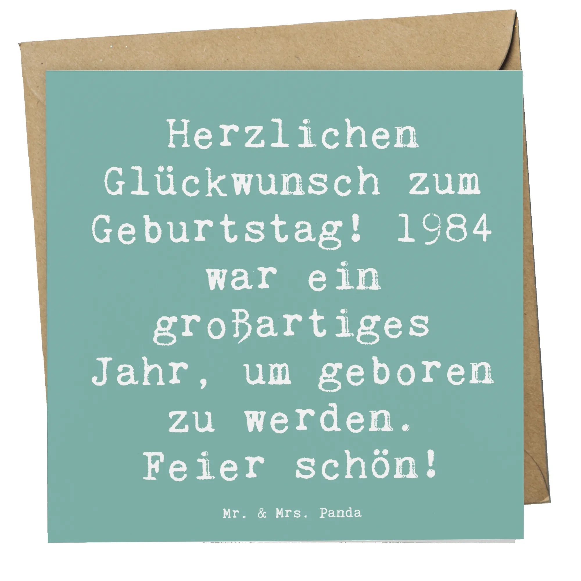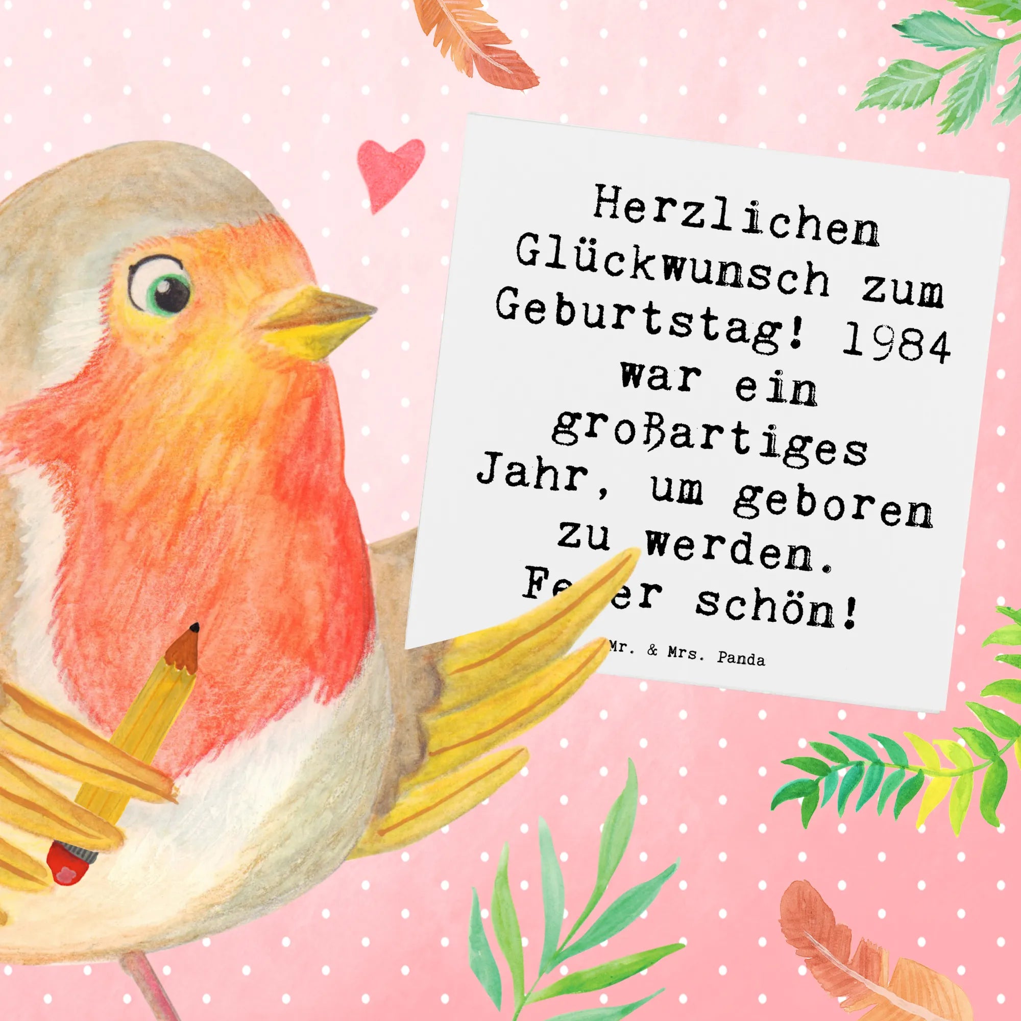 Die Karte stammt aus unserer speziellen Kollektion Geburtstag Geburtsjahr, die mit viel Liebe und kreativen Ideen von uns gestaltet wurde. Jedes Motiv wurde liebevoll von Mrs. Panda per Hand in Aquarelltechnik gezeichnet und lädt dazu ein, eintauchen in eine Welt der Freude und des Feierzwecks. Sie eignet sich hervorragend für Geburtstagskindern aus dem Jahr 1984, um ihnen zu sagen, wie besonders sie sind.