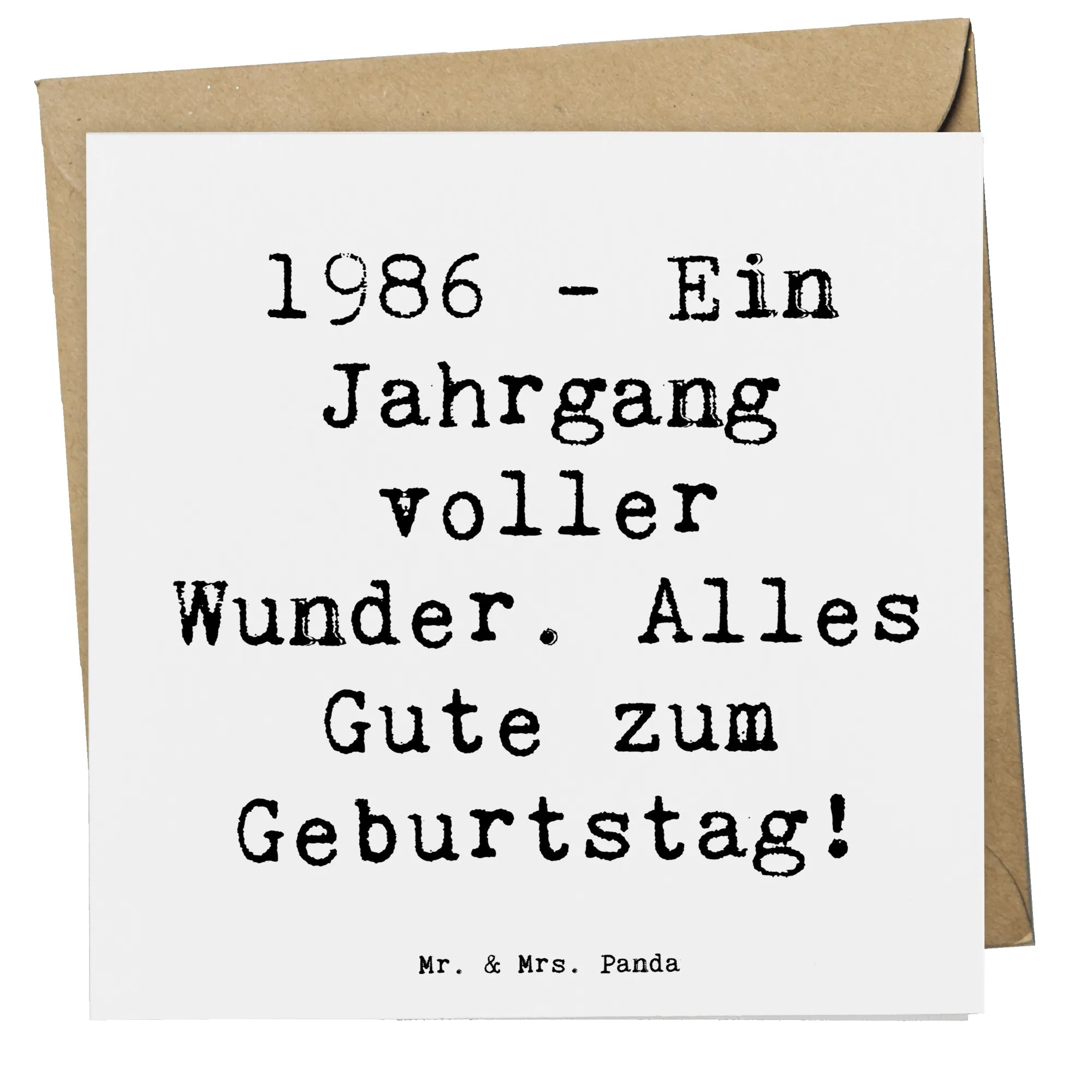 Die Deluxe Karte '1986 Geburtstag' aus der wunderbaren Geburtstagskollektion von Mr. & Mrs. Panda ist der perfekte Begleiter für jeden, der einen ganz besonderen Geburtstag feiern möchte! Diese hochwertig gestaltete Klappkarte begeistert sowohl mit ihrem ansprechenden Design als auch mit ihrem wichtigen Text: '1986 - Ein Jahrgang voller Wunder. Alles Gute zum Geburtstag!'.