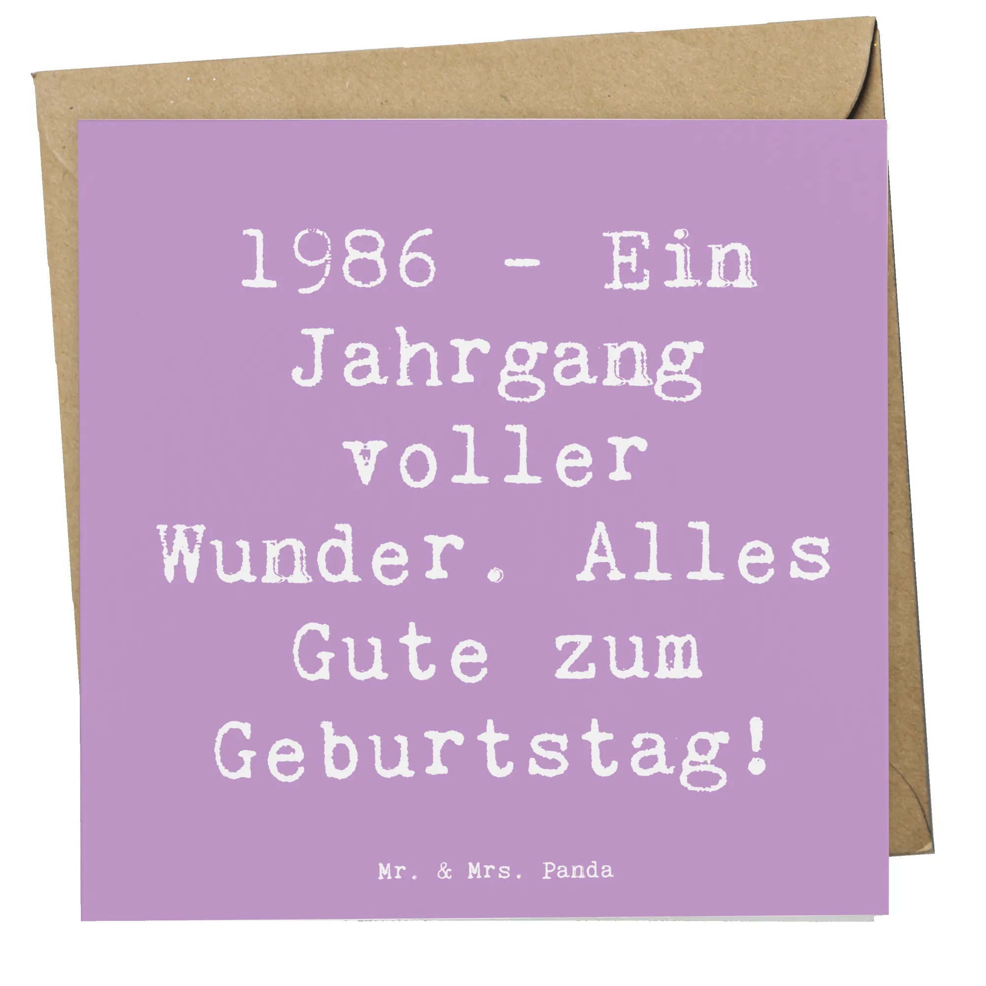 Erfreue die Herzen Deiner Freunde und Familie mit dieser besonderen Geburtstagskarte und schaffe bleibende Erinnerungen, die lange Freude bereiten werden. Die Deluxe Karte 1986 ist nicht nur ein einfaches Stück Papier, sondern ein Zeichen der Zuneigung und ein perfektes Geburtstagsgeschenk für jedes Jubiläum. Mach jeden Geburtstag unvergesslich mit dieser wunderschönen Karte von Mr. & Mrs. Panda!
