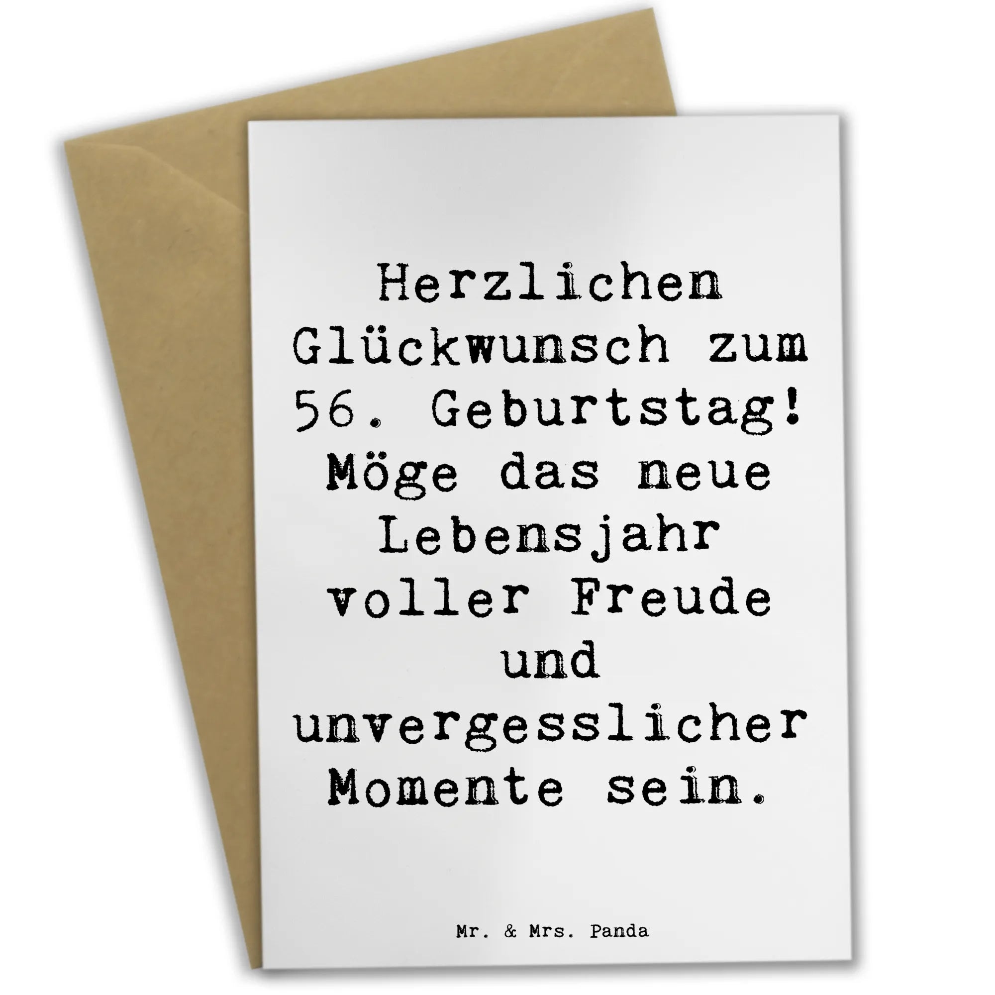Du suchst die perfekte Karte zum 56. Geburtstag? Unsere liebevoll gestaltete Grußkarte von Mr. & Mrs. Panda aus der Geburtstagskollektion "Geburtstag Alter" ist genau das: herzlich, stilvoll und sofort bereit zum Verschenken. Auf der Vorderseite steht der schöne Spruch: „Herzlichen Glückwunsch zum 56. Geburtstag! Möge das neue Lebensjahr voller Freude und unvergesslicher Momente sein.“ 🎉