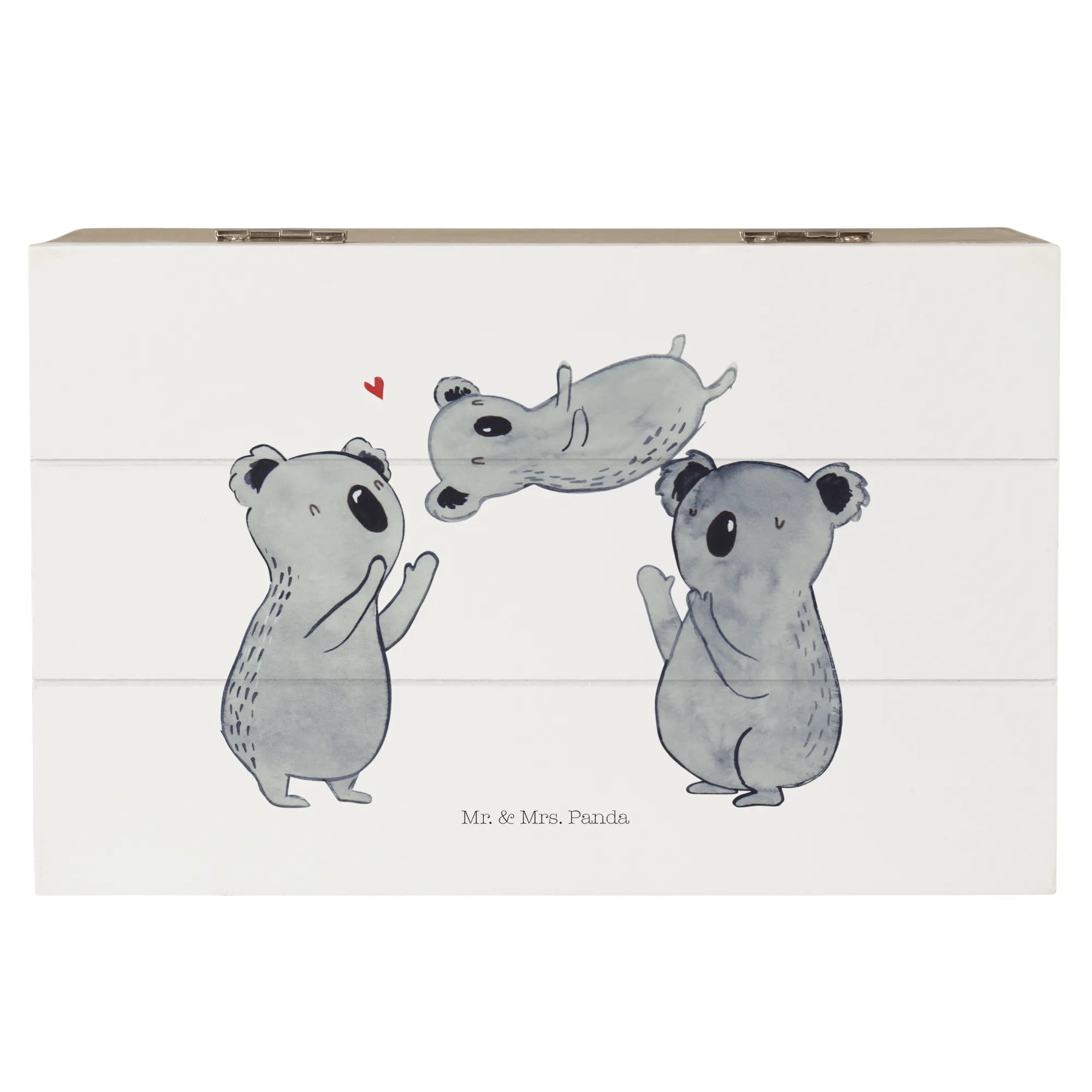 Die zauberhafte Holzkiste "Koala Feiern Sich" von Mr. & Mrs. Panda ist das perfekte Geschenk für alle, die das Leben feiern! Mit einem liebevollen Motiven von zwei fröhlichen Koalas, die einen anderen Koala in die Luft werfen, bringt sie Freude und Lebensfreude in jedes Zuhause.