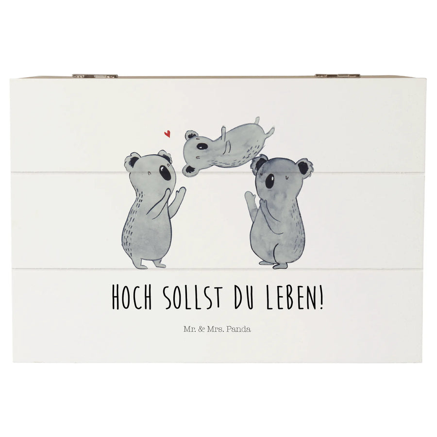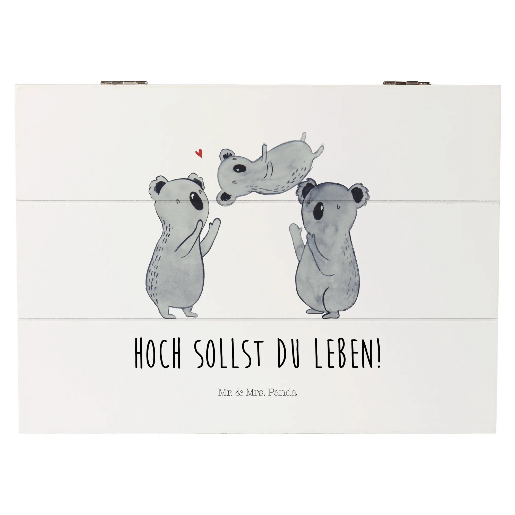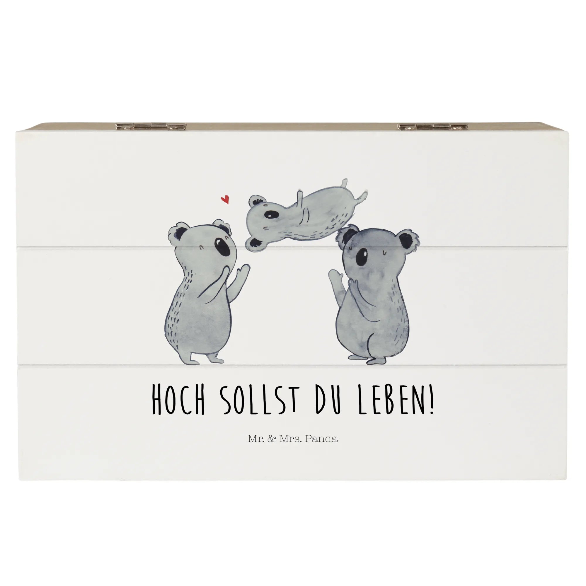 Unsere wunderschöne Holzkiste mit dem Motiv "Koala Feiern Sich" aus der Geburtstagskollektion von Mr. & Mrs. Panda ist das perfekte Geschenk für jeden Anlass.