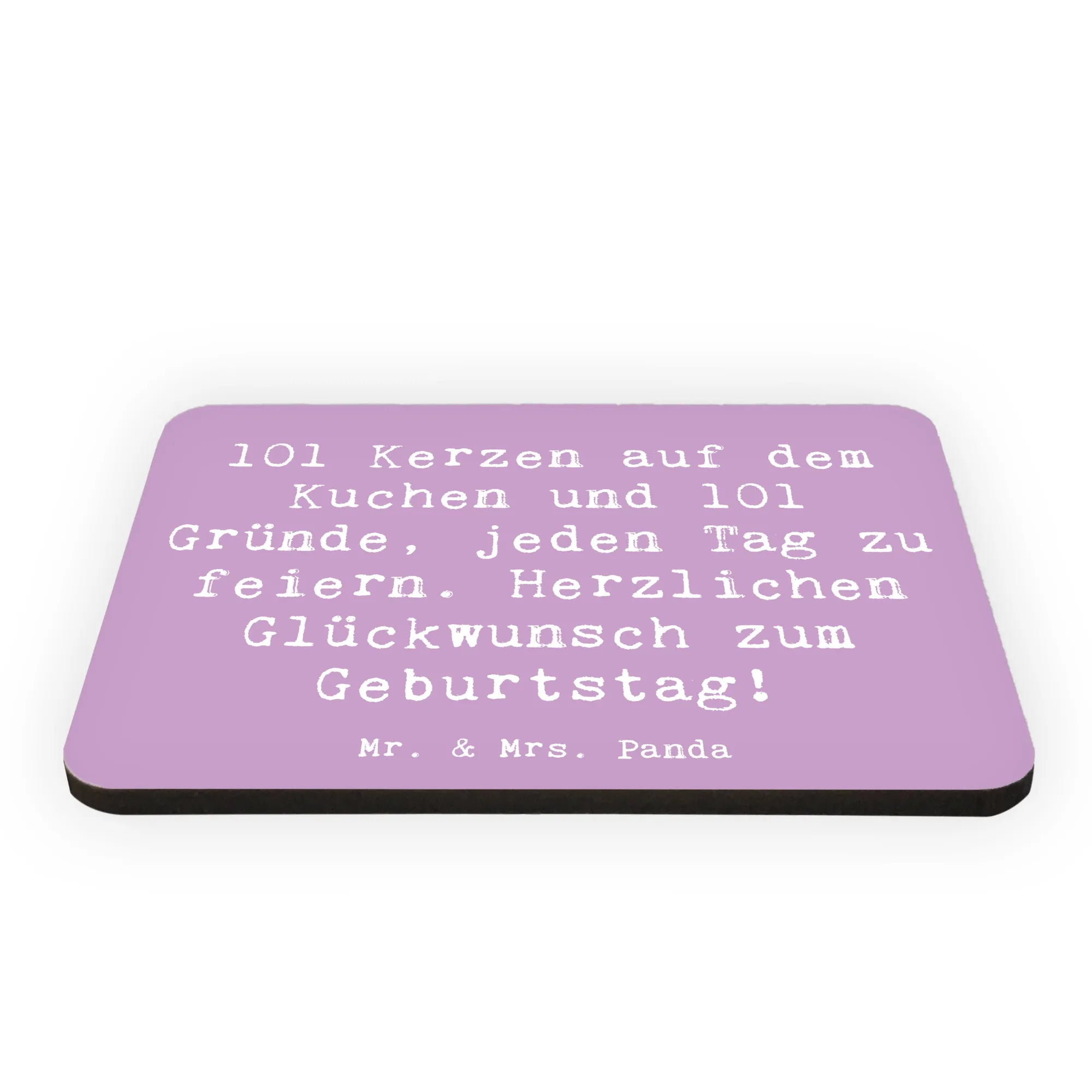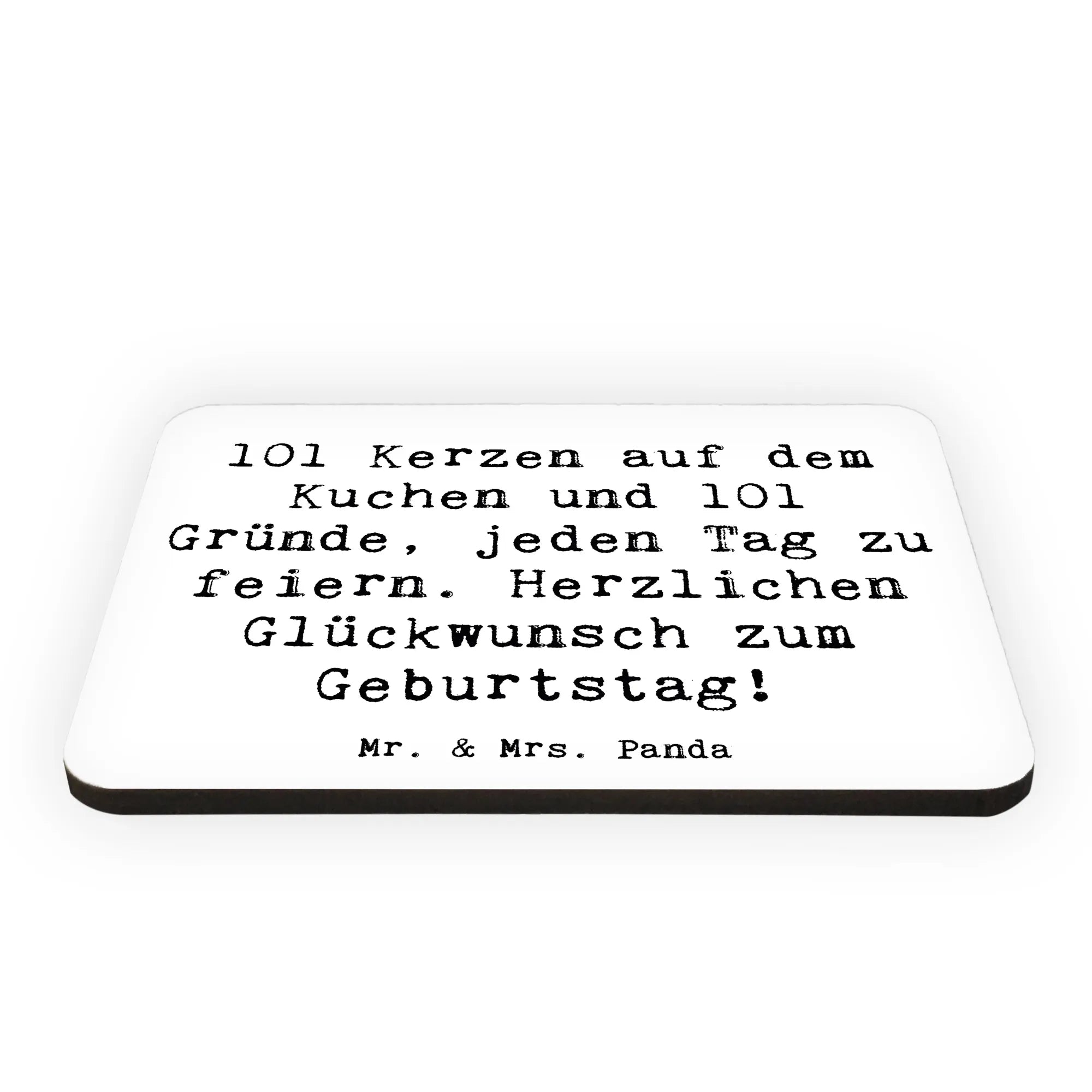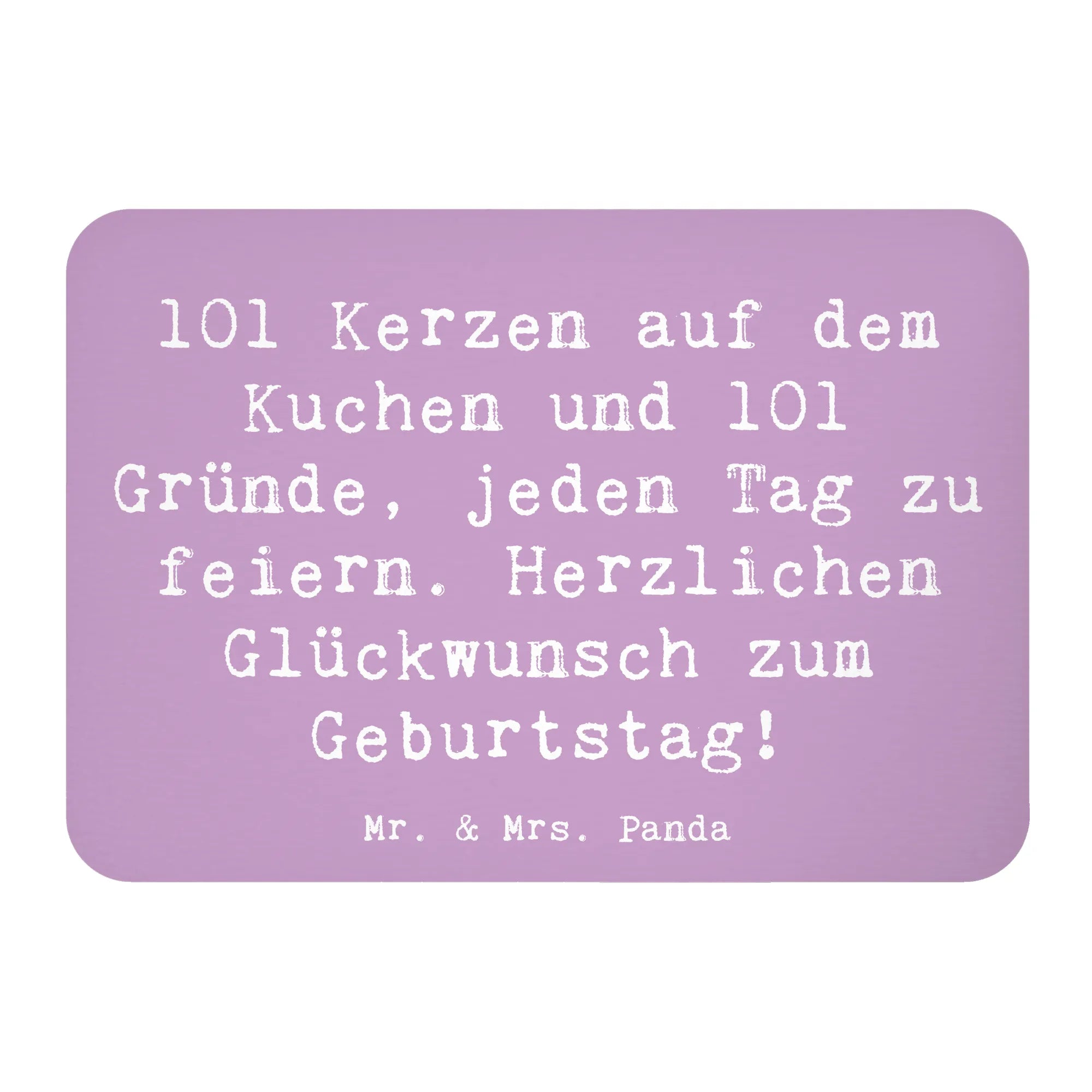 Der Kühlschrankmagnet "101. Geburtstag" von Mr. & Mrs. Panda ist das perfekte Geschenk für alle, die ihren besonderen Tag gebührend feiern möchten. Mit dem liebevollen Spruch "101 Kerzen auf dem Kuchen und 101 Gründe, jeden Tag zu feiern. Herzlichen Glückwunsch zum Geburtstag!" zaubert dieser farbenfrohe Magnet ein Lächeln auf jedes Gesicht.