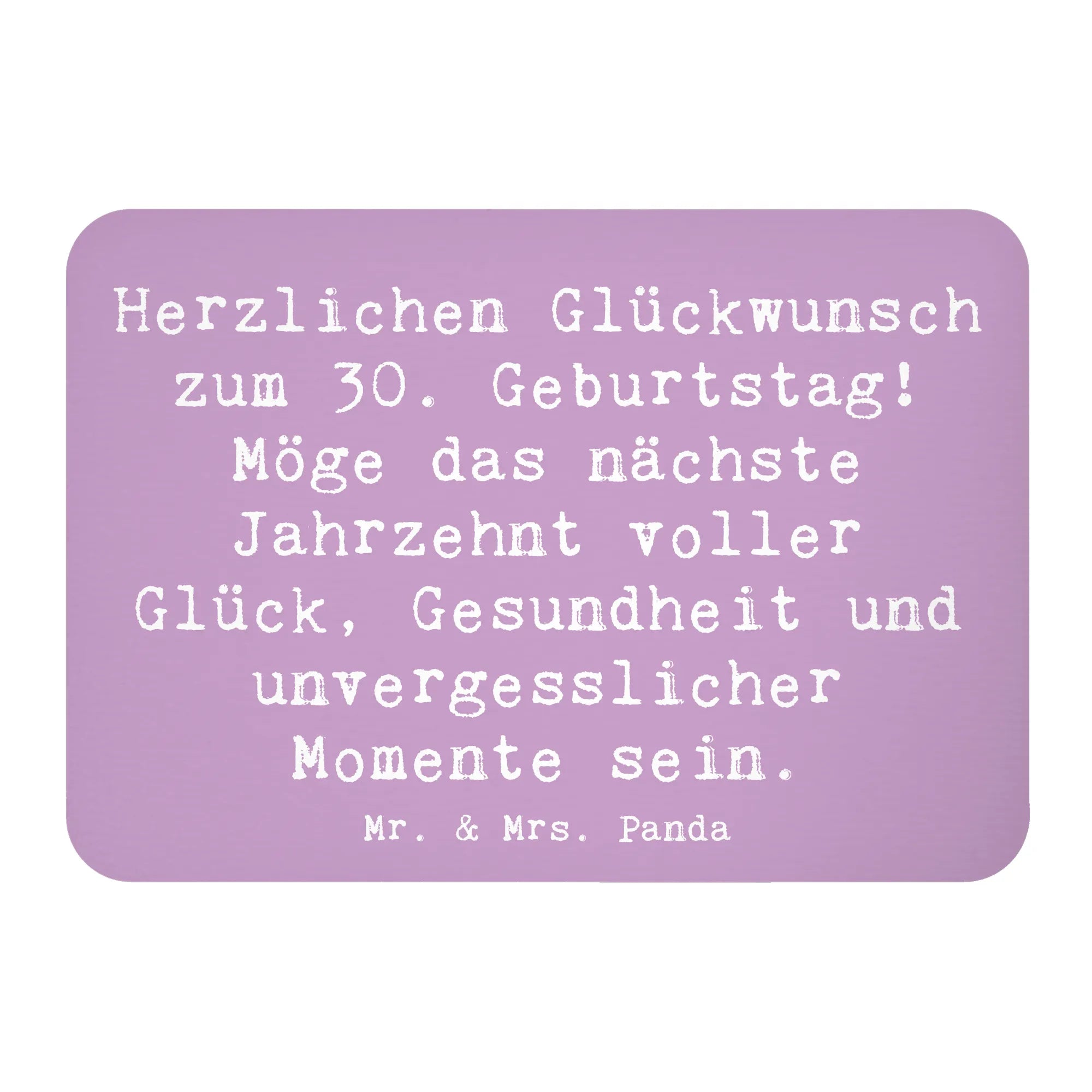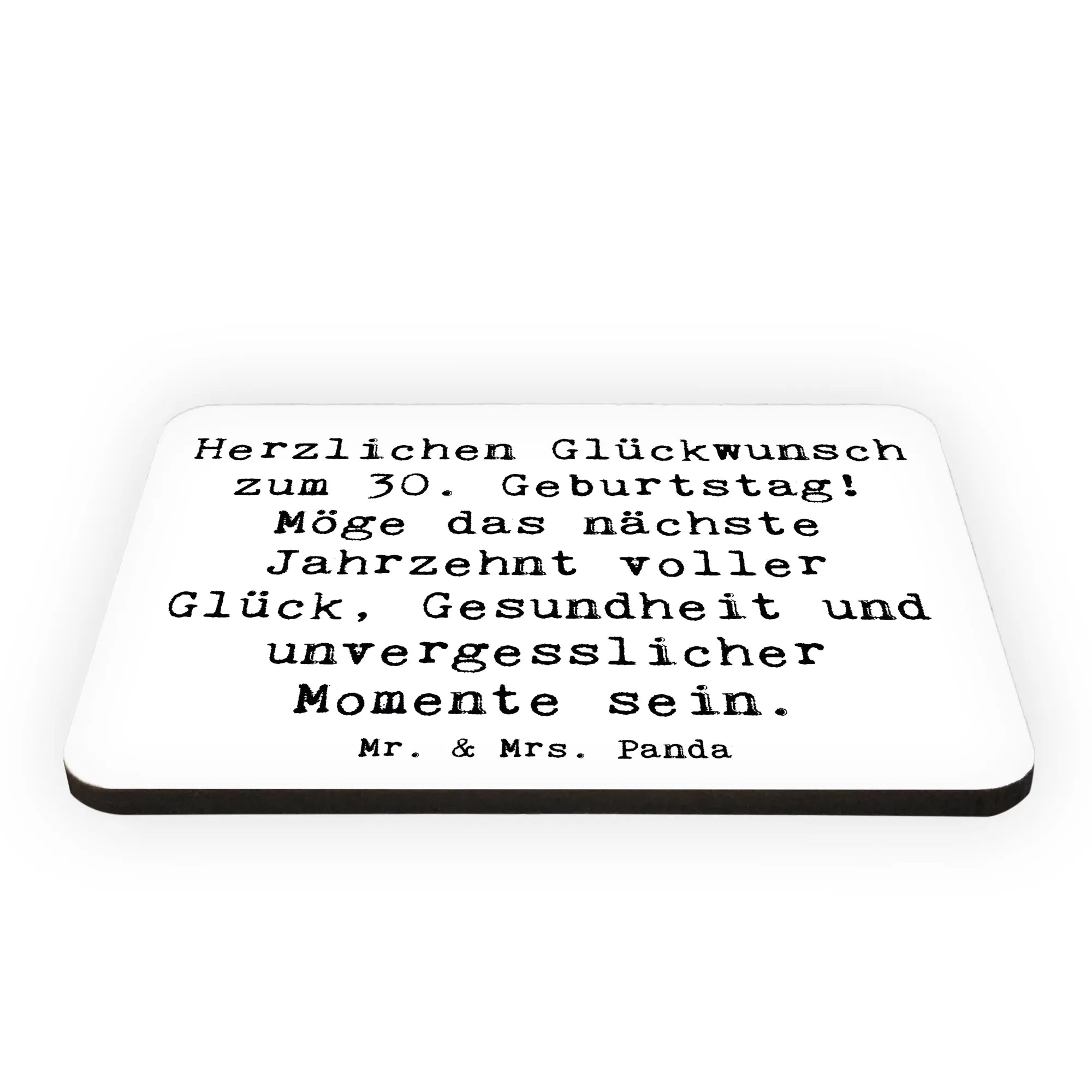 Der Kühlschrankmagnet von Mr. & Mrs. Panda ist das perfekte Geschenk zum 30. Geburtstag! Mit dem liebevollen Spruch: 'Herzlichen Glückwunsch zum 30. Geburtstag! Möge das nächste Jahrzehnt voller Glück, Gesundheit und unvergesslicher Momente sein.' bringt er Freude und Farbe in die Küche oder ins Büro.
