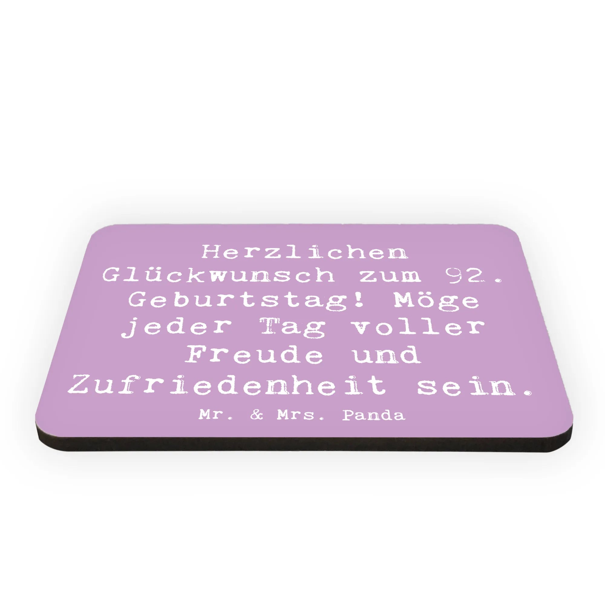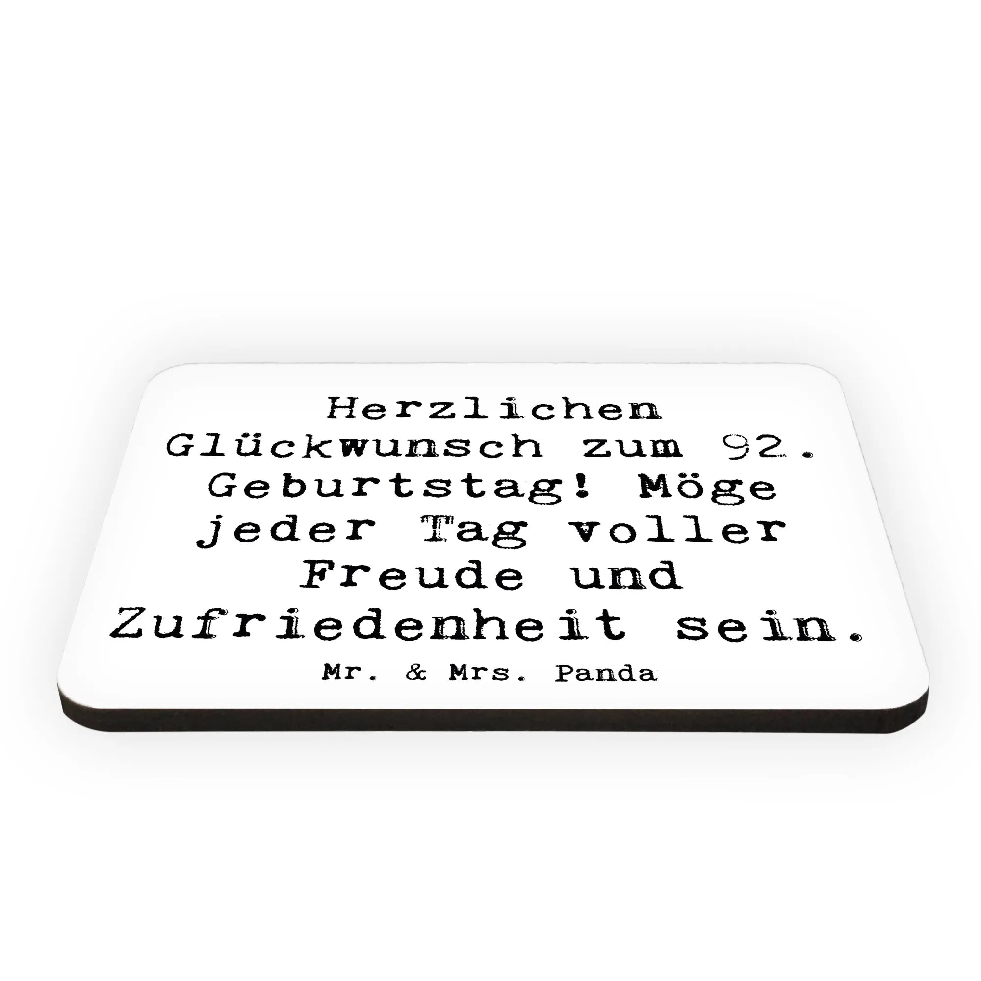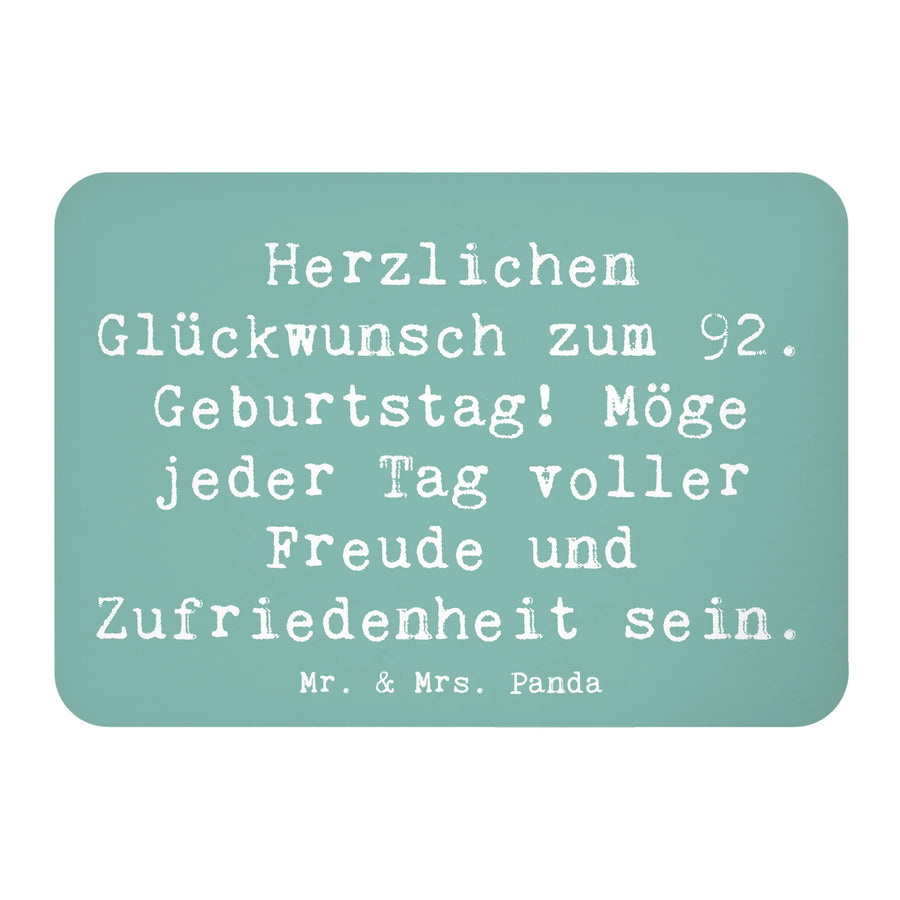 Die Botschaft "Herzlichen Glückwunsch zum 92. Geburtstag! Möge jeder Tag voller Freude und Zufriedenheit sein" bringt die besten Wünsche auf den Punkt und kann stets als Erinnerung an die gemeinsamen schönen Momente dienen. Egal, ob es sich um ein Geburtstagsgeschenk für die Großeltern, ein besonderes Souvenir oder einfach eine liebevolle Geste handelt, dieser Motivmagnet aus der Kollektion Geburtstag Alter von Mr. & Mrs. Panda ist eine ideale Wahl.