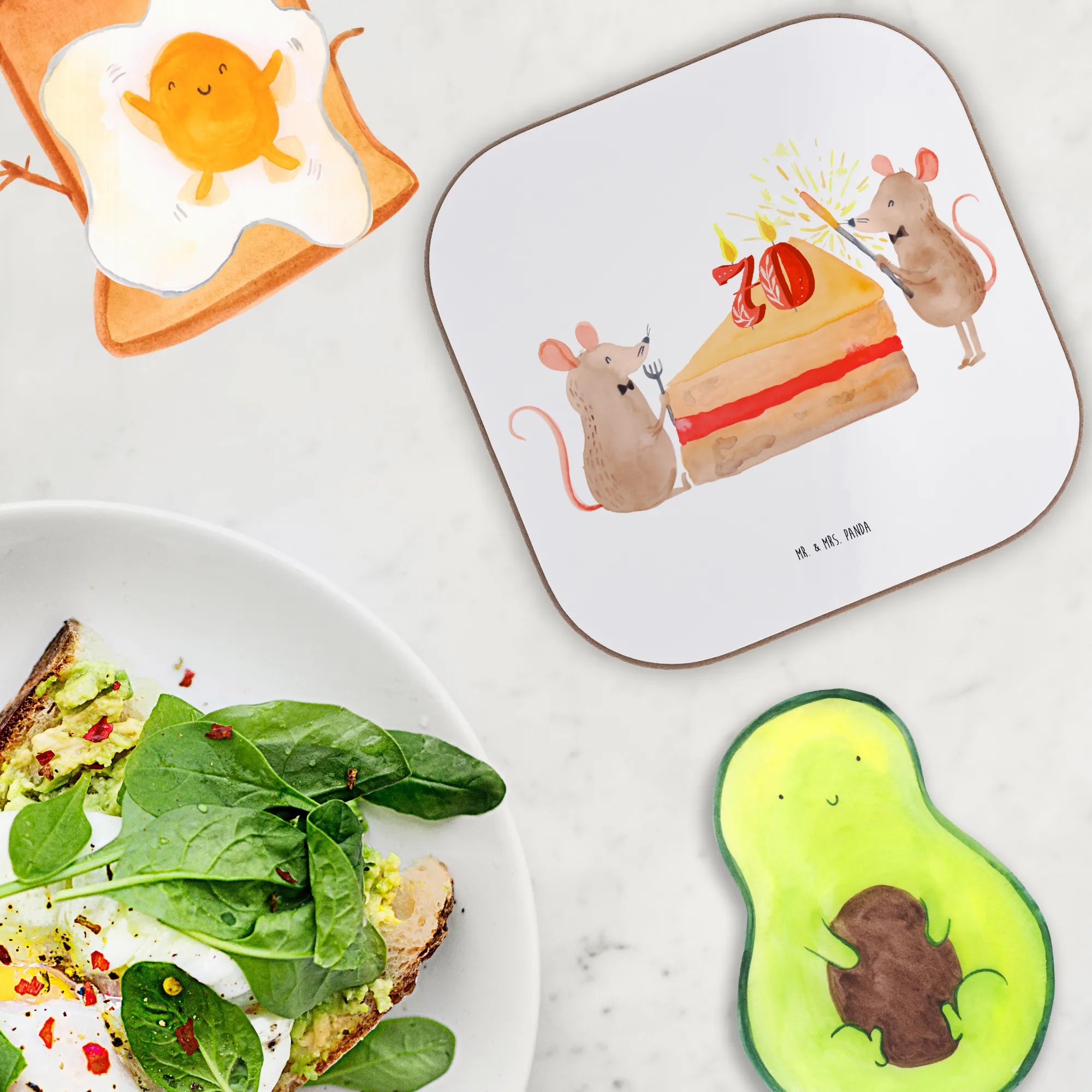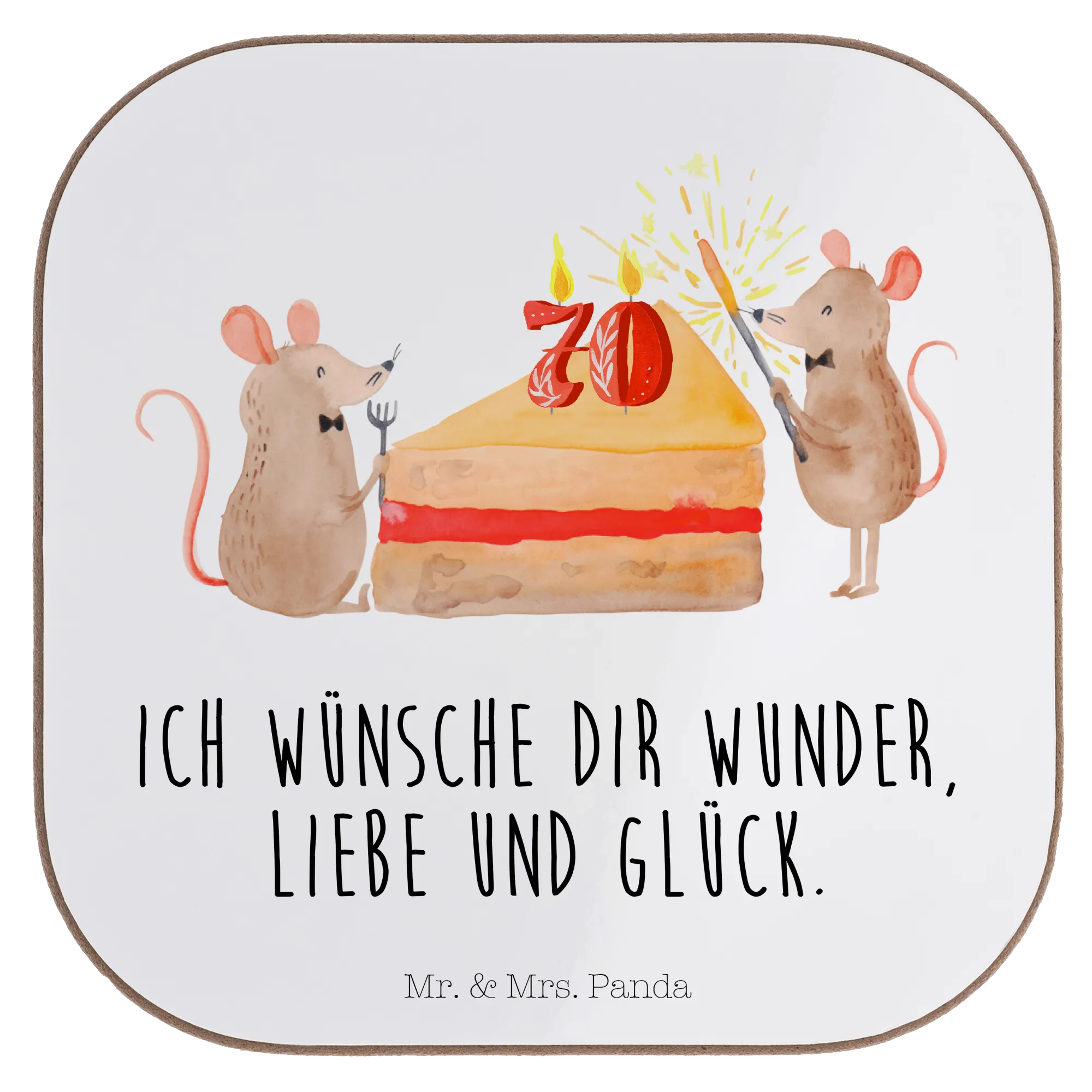 Quadratische Untersetzer 70. Geburtstag Mäuse Kuchen - mit Spruch