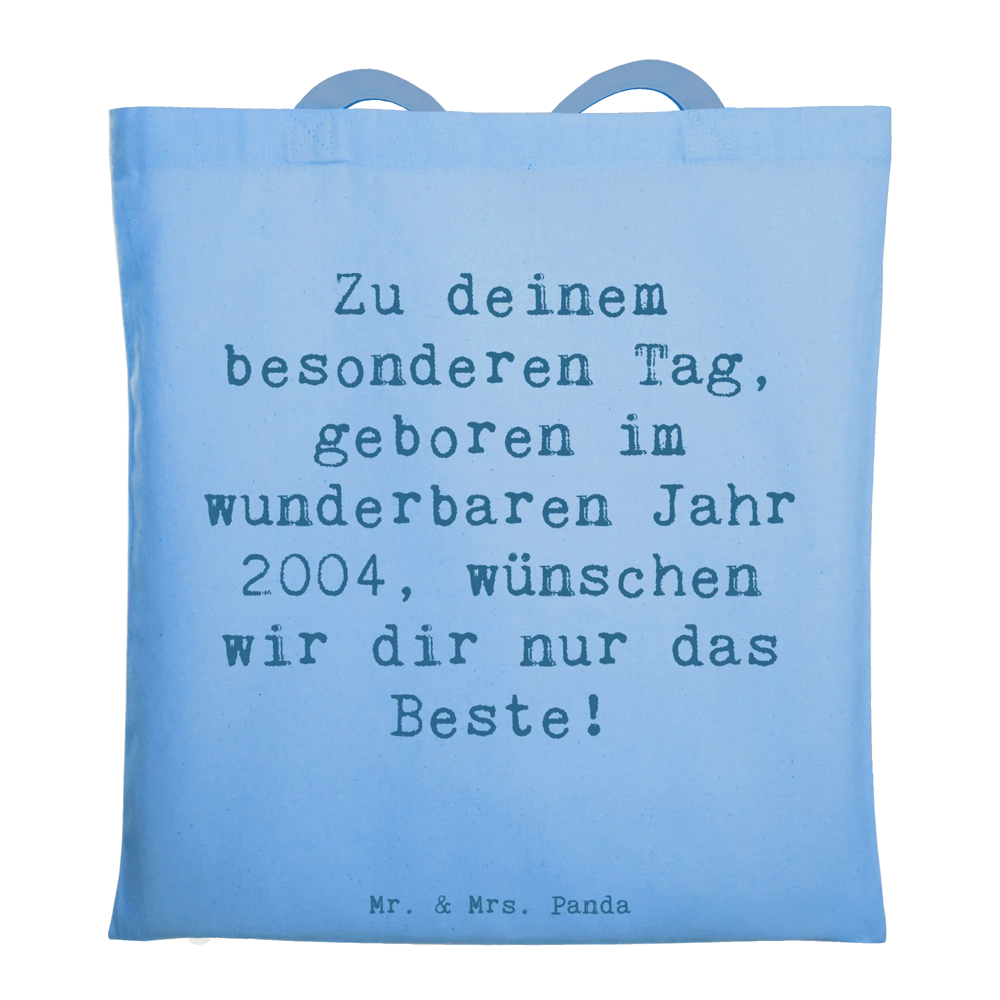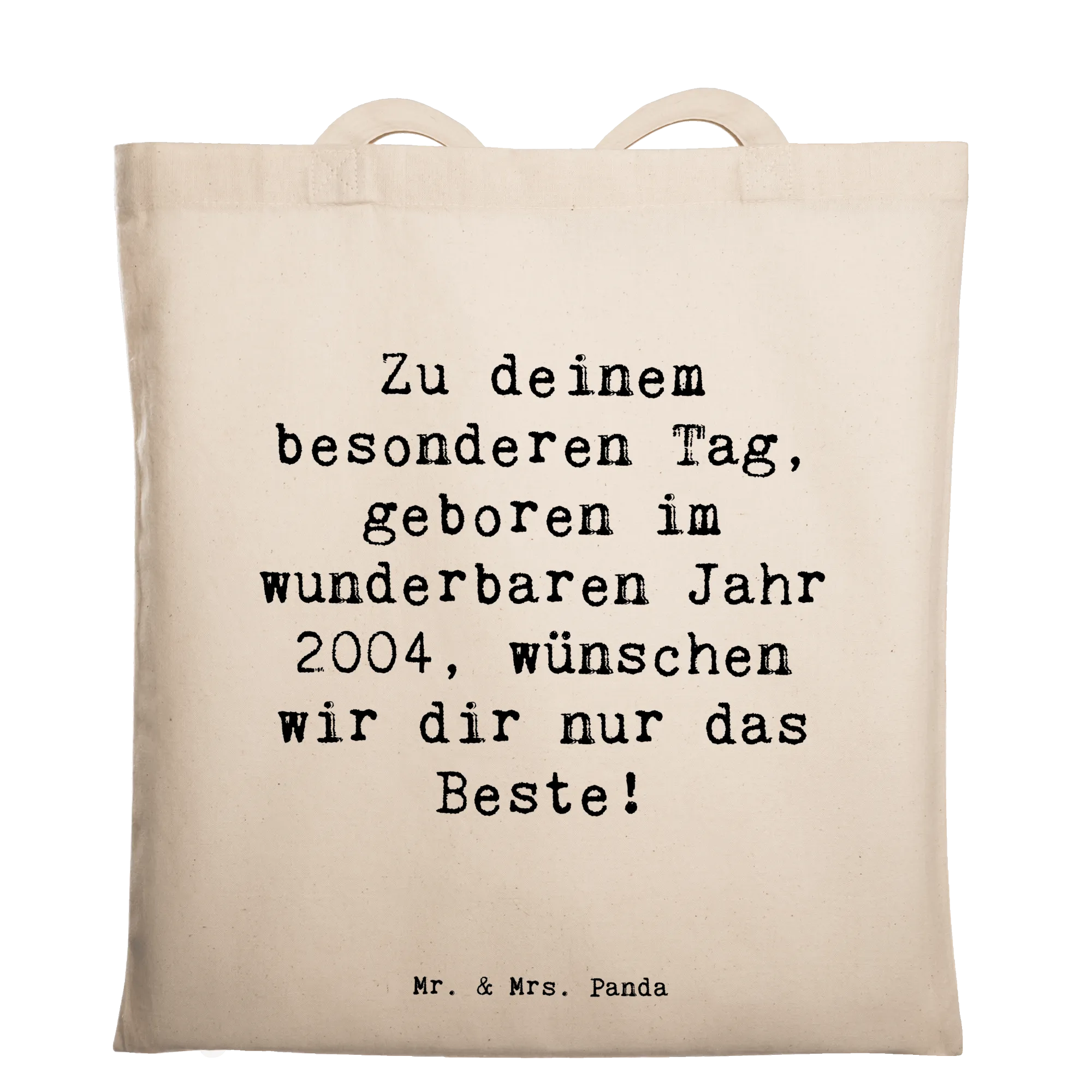 Die Tragetasche mit dem Motiv "Geboren im wunderbaren Jahr 2004" von Mr. & Mrs. Panda ist das perfekte Geschenk für jeden, der in diesem besonderen Jahr das Licht der Welt erblickt hat! 🎉 Diese liebevoll gestaltete Tasche erzählt nicht nur eine Geschichte, sondern bietet auch eine wunderbare Möglichkeit, Erinnerungen zu schaffen! Ob zum Geburtstag, zur Einschulung oder einfach als kleine Aufmerksamkeit - diese Tragetasche zaubert jedem ein Lächeln ins Gesicht!