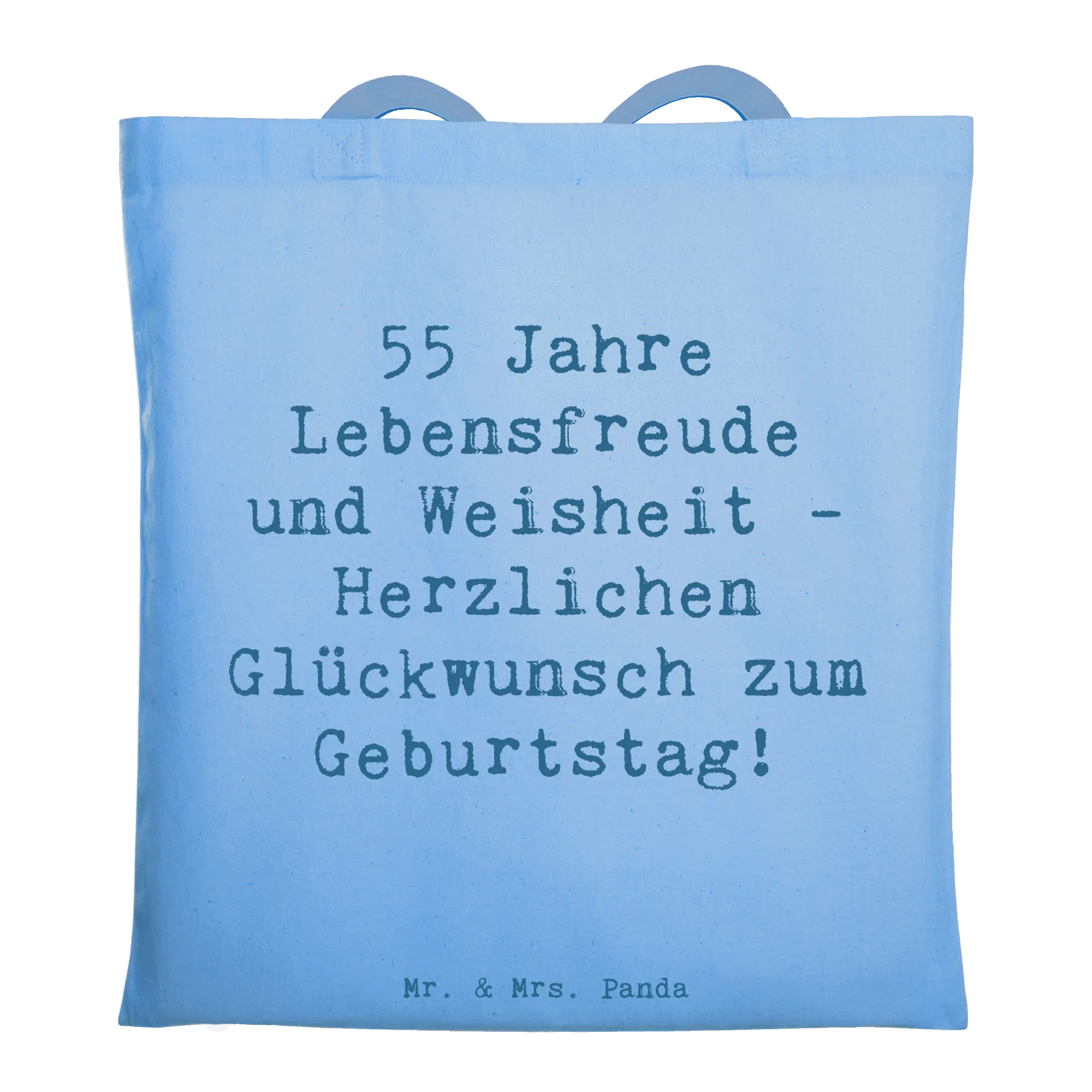 Die wunderschöne Tragetasche von Mr. & Mrs. Panda ist das perfekte Geschenk zum 55. Geburtstag! Mit dem herzlichen Spruch "55 Jahre Lebensfreude und Weisheit - Herzlichen Glückwunsch zum Geburtstag!" ist sie nicht nur praktisch, sondern auch eine charmante Erinnerung an diesen besonderen Tag.