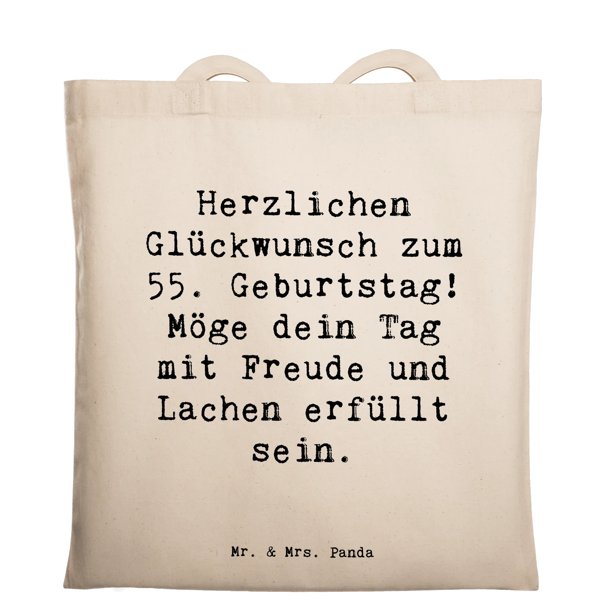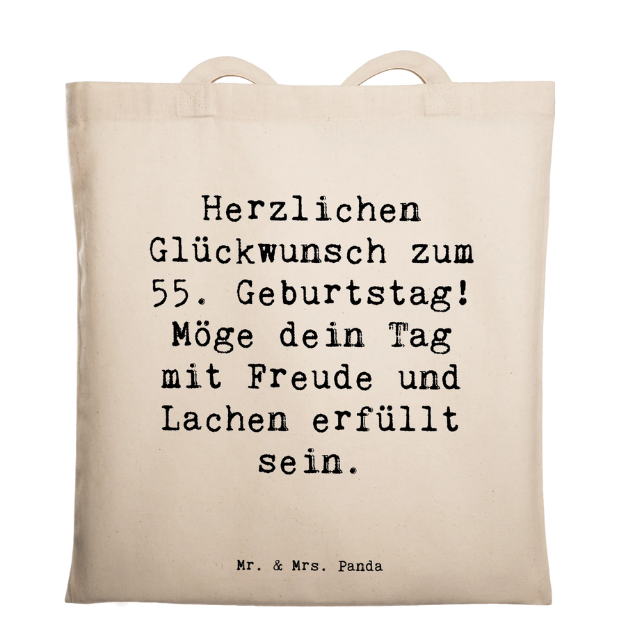 Entdecke die perfekte Tragetasche von Mr. & Mrs. Panda, die für den 55. Geburtstag entworfen wurde! Diese hochwertige Tragetasche wird mit einem liebevollen Slogan bedruckt: "Herzlichen Glückwunsch zum 55. Geburtstag! Möge dein Tag mit Freude und Lachen erfüllt sein." Sie ist nicht nur ein tolles Geburtstagsgeschenk, sondern auch eine stilvolle und praktische Begleitung für den Alltag.
