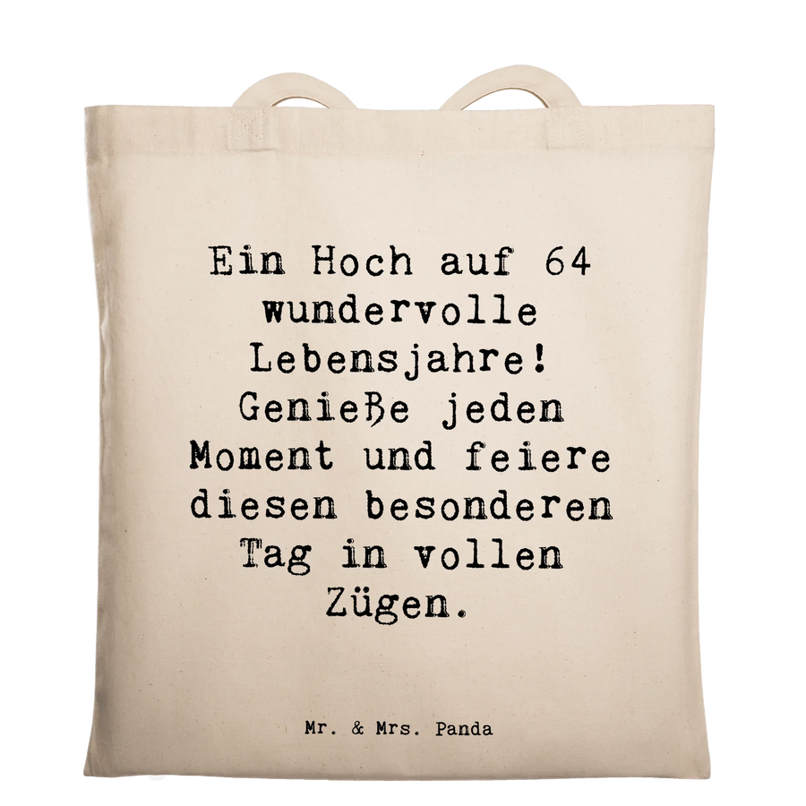 Herzlich willkommen in der farbenfrohen Welt von Mr. & Mrs. Panda! Unsere wunderschöne Tragetasche zum 64. Geburtstag ist das perfekte Geschenk für all die besonderen Menschen, die diesen einzigartigen Lebensabschnitt feiern möchten. Mit dem motivierenden Slogan: "Ein Hoch auf 64 wundervolle Lebensjahre! Genieße jeden Moment und feiere diesen besonderen Tag in vollen Zügen." wird niemals vergessen, wie viel Freude das Leben bringen kann. Diese Tragetasche hat die idealen Abmessungen von 420 mm x 380 mm und ist perfekt, um all deine persönlichen Schätze zu transportieren – egal ob beim Einkaufen, zum Strand oder für den täglichen Gebrauch.