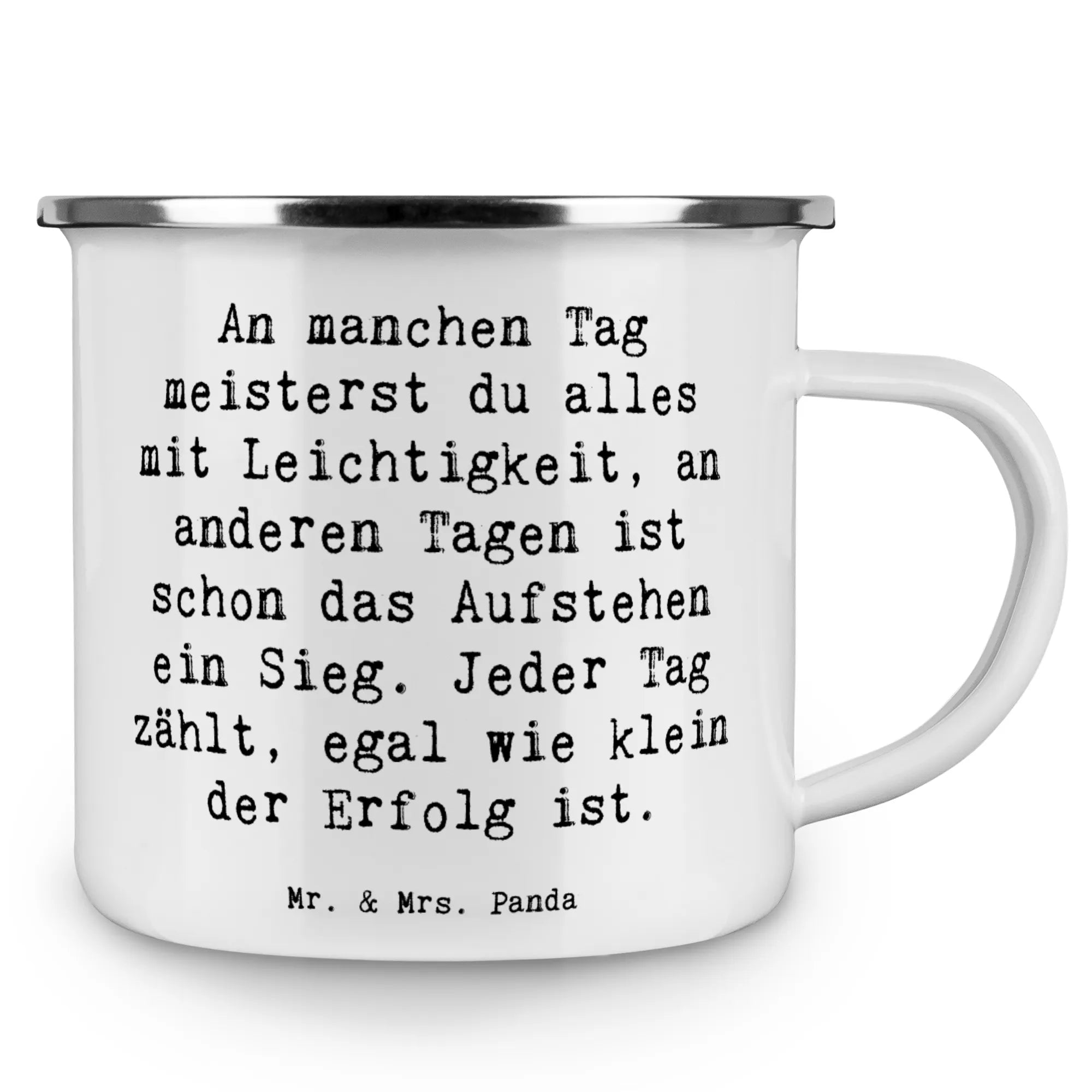 Camping Emaille Tasse Spruch Leichtigkeit im Alltag – Mr. & Mrs. Panda