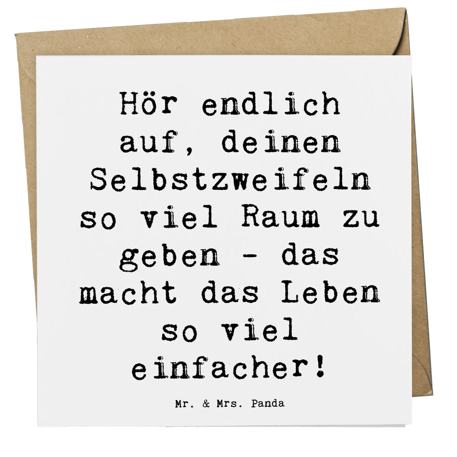 Mit dem motivierenden Spruch "Hör endlich auf, deinen Selbstzweifeln so viel Raum zu geben - das macht das Leben so viel einfacher!" spricht diese Karte insbesondere Menschen an, die manchmal den Glauben an sich selbst verlieren. Egal ob zum Geburtstag, zur Hochzeit, als Glückwunschkarte oder einfach nur so – diese Karte ist vielseitig einsetzbar und bringt in jede Situation einen positiven Impuls.