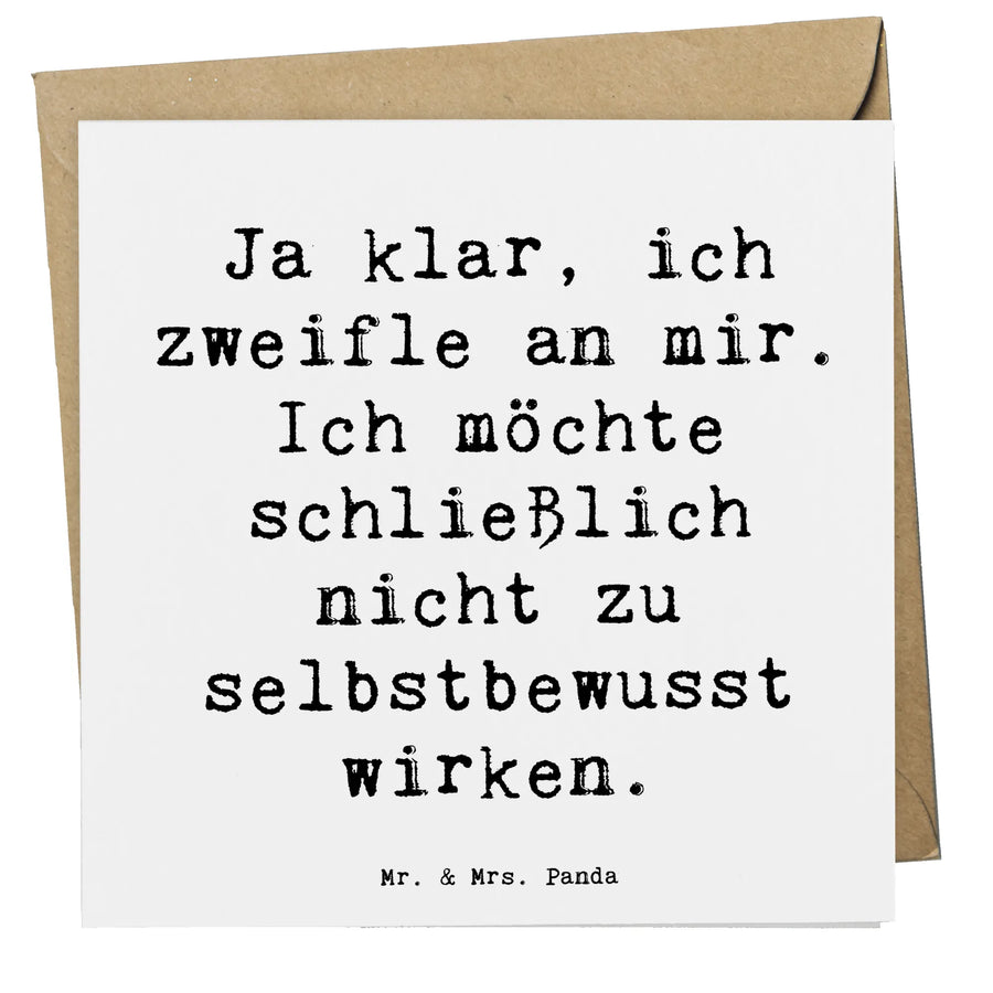 "Mit Text" auf der Vorderseite sagt es charmant: "Ja klar, ich zweifle an mir. Ich möchte schließlich nicht zu selbstbewusst wirken." – genau der richtige Spruch für alle, die sich manchmal unsicher fühlen!