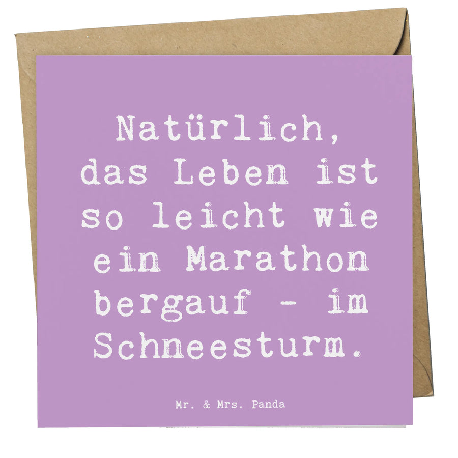 Sie ist die ideale Begleitung für deine individuellen Grüße und Glückwünsche, egal ob zum Geburtstag, zur Hochzeit oder einem anderen feierlichen Anlass. Der Spruch "Natürlich, das Leben ist so leicht wie ein Marathon bergauf - im Schneesturm" bringt nicht nur ein Lächeln auf die Lippen, sondern inspiriert auch dazu, mit Leichtigkeit durch das Leben zu gehen.