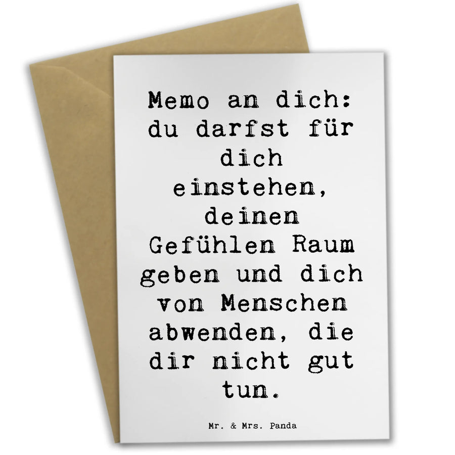 Diese Karte ist nicht nur ein einfacher Gruß, sondern eine liebevolle Botschaft, die zeigt, dass du für deine Freunde und Familie da bist. Bedruckt mit dem inspirierenden Spruch: "Memo an dich: du darfst für dich einstehen, deinen Gefühlen Raum geben und dich von Menschen abwenden, die dir nicht gut tun." Diese Botschaft ermutigt und motiviert, was sie zur idealen Wahl für vielerlei Anlässe macht.