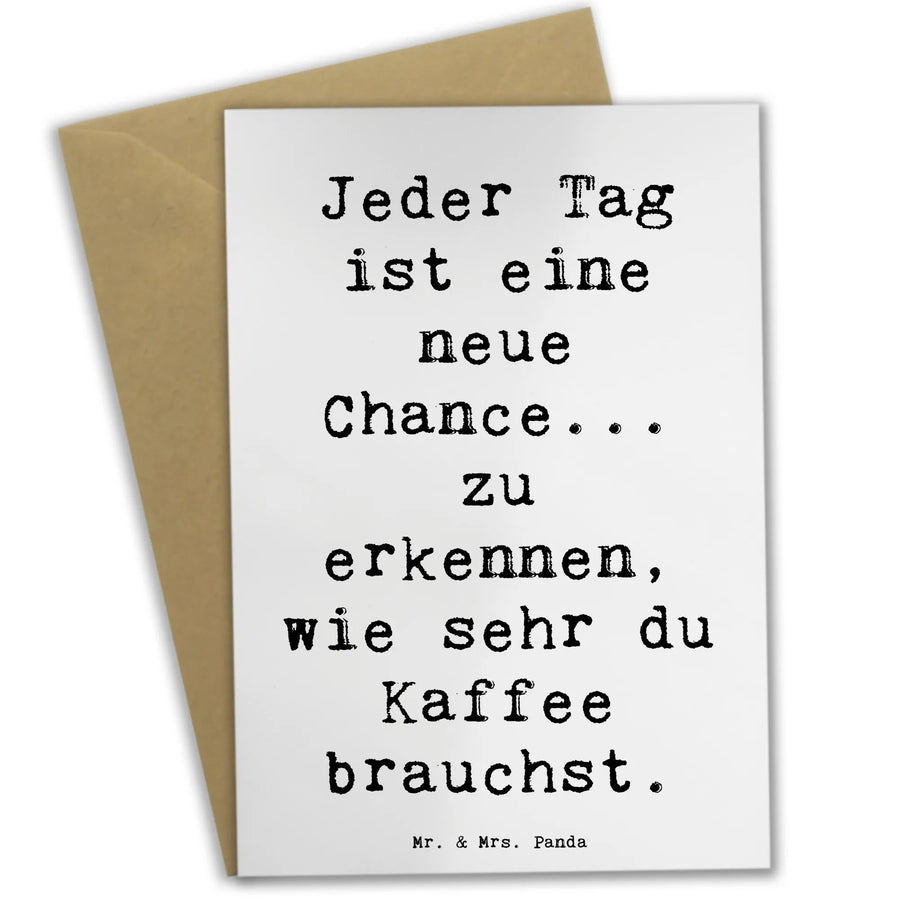 Die wunderschöne Grußkarte von Mr. & Mrs. Panda ist das perfekte Geschenk für all jene, die Motivation, positive Gedanken und gute Stimmung in ihr Leben bringen möchten. Sie ist ideal geeignet für verschiedene Anlässe, sei es zum Geburtstag, zur Hochzeit oder einfach als nette Überraschung für einen Freund. Mit dem liebevollen Spruch „Jeder Tag ist eine neue Chance... zu erkennen, wie sehr du Kaffee brauchst.“ bringt diese Karte ein Lächeln auf jedes Gesicht.