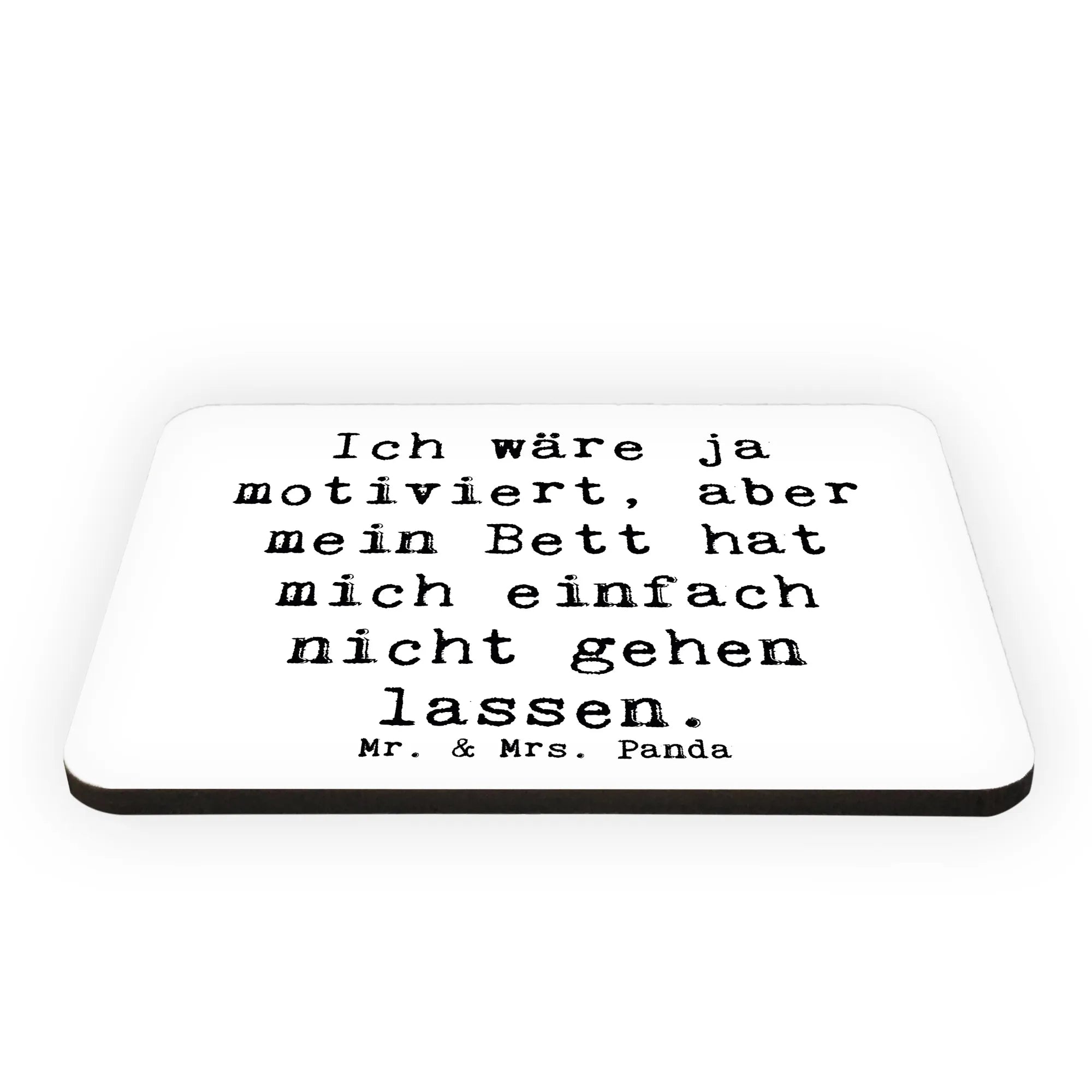 Der Mr. & Mrs. Panda Magnet mit der motivierenden Botschaft "Ich wäre ja motiviert, aber mein Bett hat mich einfach nicht gehen lassen" ist das perfekte Geschenk für alle, die eine Portion Motivation in ihrem Alltag brauchen!