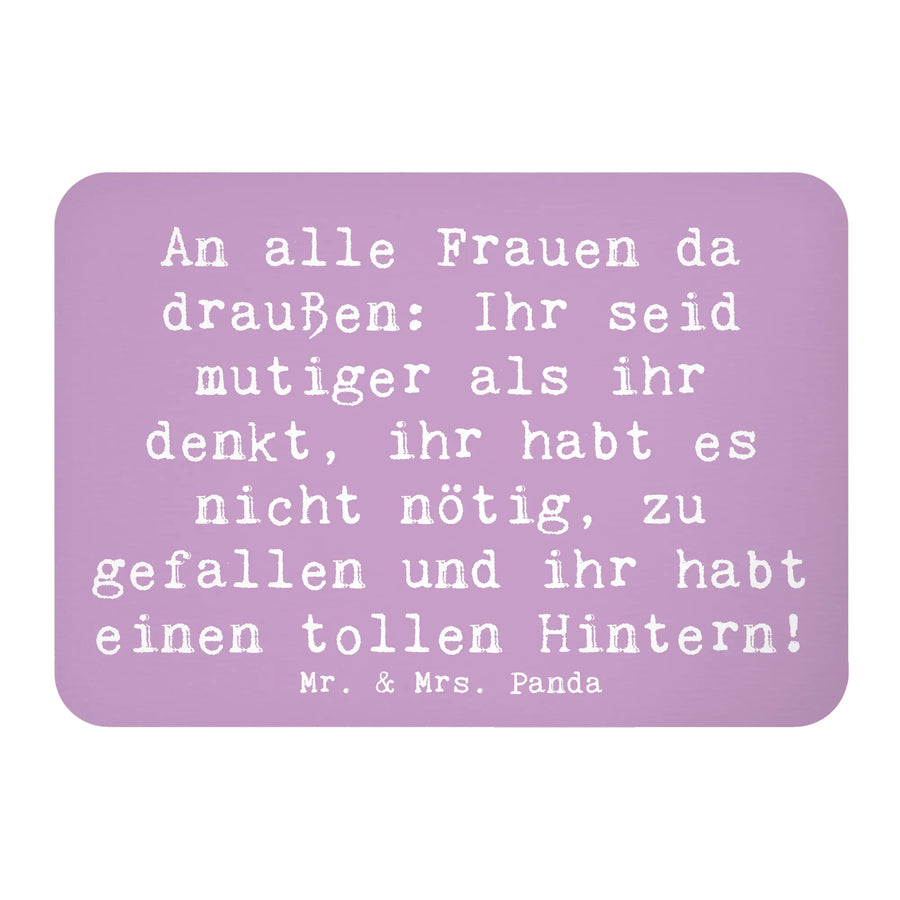 Dieser zauberhafte Magnet in zartem Lavendeltraum ist mehr als nur ein nützlicher Helfer – er ist ein kleiner Mutmacher für jeden Tag. Auf dem Magneten prangt der freche und stärkende Spruch: „An alle Frauen da draußen: Ihr seid mutiger als ihr denkt, ihr habt es nicht nötig, zu gefallen und ihr habt einen tollen Hintern!“ Ein vielseitiges Statement voller Herz, das Küche, Büro oder Flur sofort aufhellt.