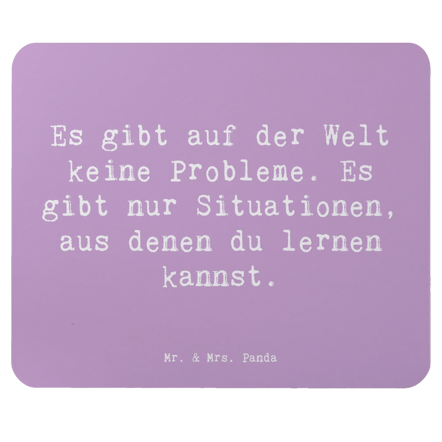 Die Botschaft auf dem Mauspad, "Es gibt auf der Welt keine Probleme. Es gibt nur Situationen, aus denen du lernen kannst.", bringt jeden zum Nachdenken und sorgt für Motivation im Alltag. Ob du gerade an einem wichtigen Projekt arbeitest oder einfach nur in der E-Mail-Flut versinkst – mit diesem Design begleitest du deinen Arbeitsalltag mit einer positiven Stimmung.