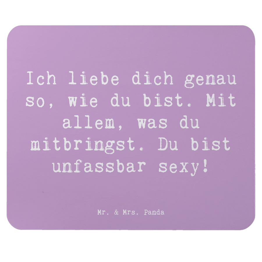 Suchst du nach einem besonderen Geschenk für einen lieben Menschen? Dann ist das Mauspad "Sinnlichkeit" aus der fantastischen Kollektion "Gefühle & Stimmungen" von Mr. & Mrs. Panda genau das Richtige! Mit dem charmanten Slogan "Ich liebe dich genau so, wie du bist. Mit allem, was du mitbringst. Du bist unfassbar sexy!" zauberst du jedem ein Lächeln ins Gesicht.