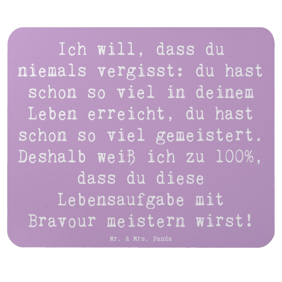 Das hochwertige Mauspad aus Naturkautschuk verleiht deinem Arbeitsplatz nicht nur eine persönliche Note, sondern bietet auch den perfekten Trost in schwierigen Zeiten. Der eingedruckte Spruch "Ich will, dass du niemals vergisst: du hast schon so viel in deinem Leben erreicht, du hast schon so viel gemeistert. Deshalb weiß ich zu 100%, dass du diese Lebensaufgabe mit Bravour meistern wirst!" wird dich bei jedem Klick daran erinnern, wie stark du bist.