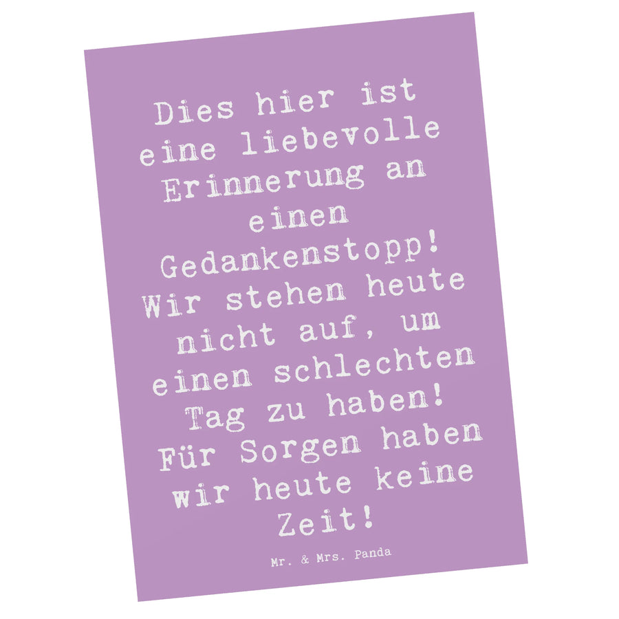 Jedes Detail unserer Karte ist mit Liebe gestaltet, sodass sie nicht nur eine Nachricht überbringt, sondern auch als liebevolle Erinnerung dient. Der magische Spruch "Dies hier ist eine liebevolle Erinnerung an einen Gedankenstopp! Wir stehen heute nicht auf, um einen schlechten Tag zu haben! Für Sorgen haben wir heute keine Zeit!" ermutigt dazu, den Stress hinter sich zu lassen und jeden Moment zu genießen.