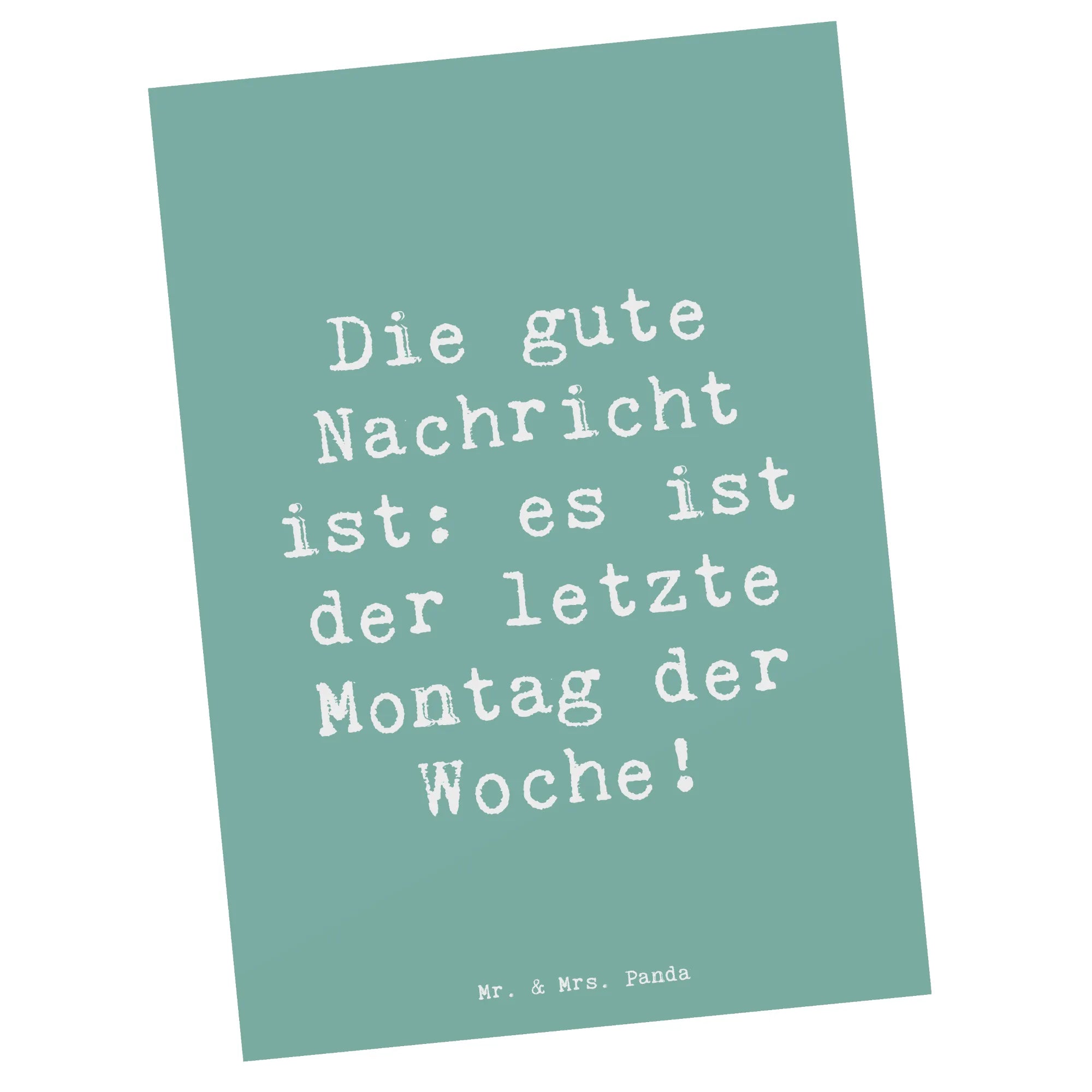Besondere Merkmale wie der lang anhaltende Druck mit hochqualitativer Tinte machen diese Postkarte zu einem langlebigen Geschenk. Sie hat nicht nur eine wunderschöne Vorderseite, sondern bietet auch genug Platz für deine persönlichen Botschaften auf der blanko Rückseite. Die gute Nachricht ist: es ist der letzte Montag der Woche! ist ein Spruch, der jeden aufmuntert und motiviert.