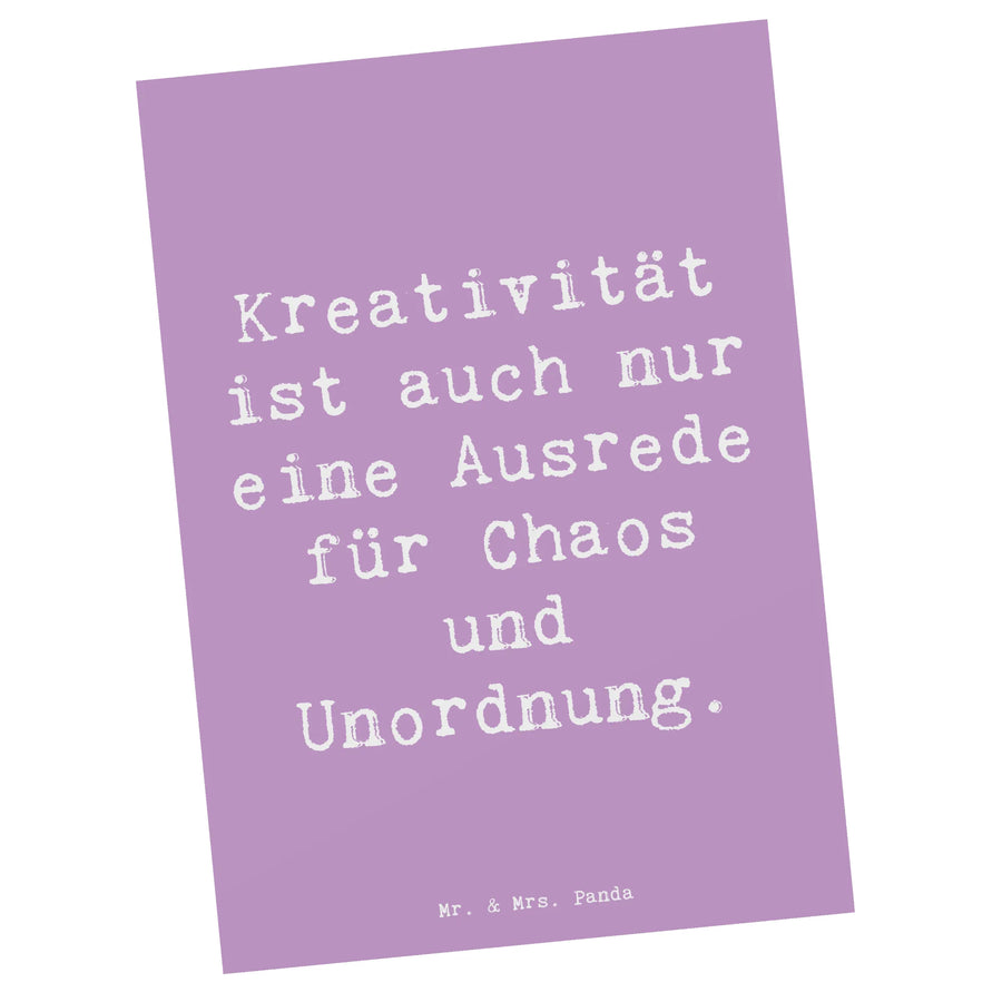 Postkarte Spruch Kreativität und Chaos - Lavendeltraum