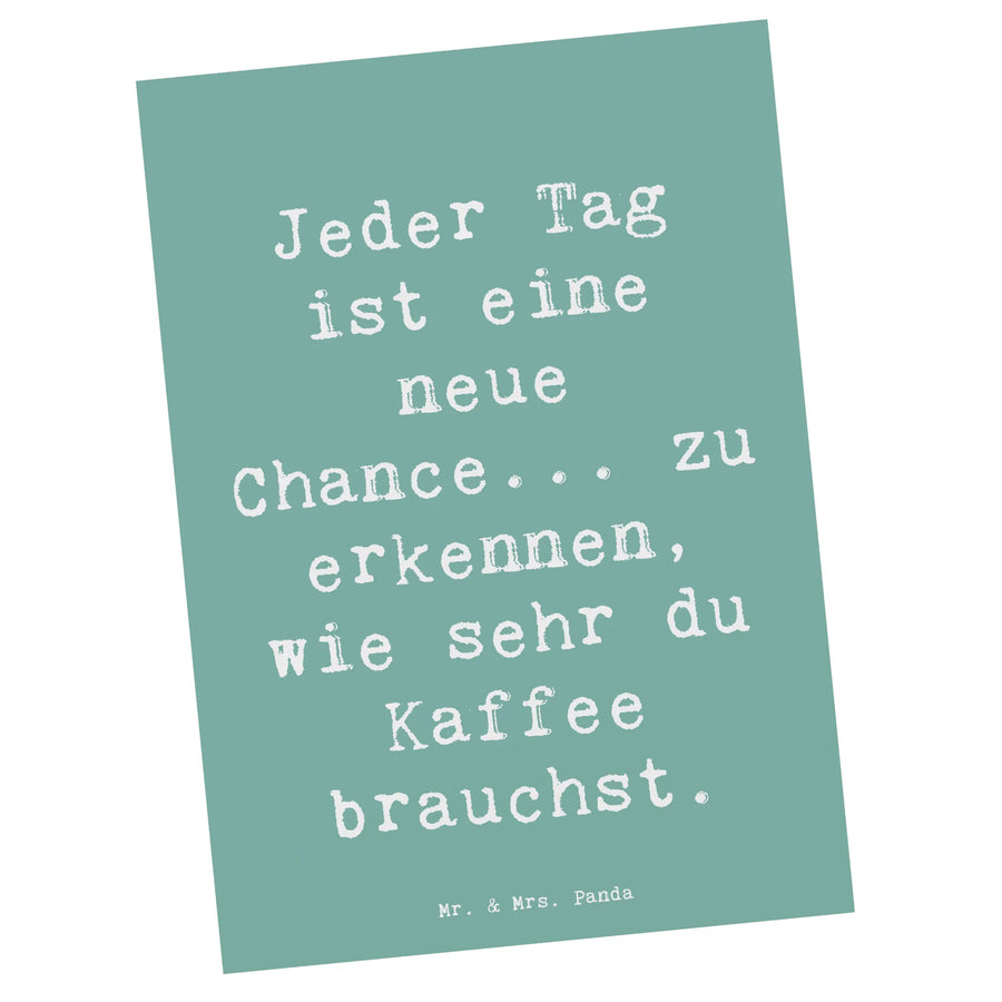 Suchst du das perfekte Geschenk für einen besonderen Anlass? Die Postkarte Motivation von Mr. & Mrs. Panda aus der liebevollen Kollektion Gefühle & Stimmungen ist genau das, was du brauchst! Mit dem witzigen Spruch „Jeder Tag ist eine neue Chance... zu erkennen, wie sehr du Kaffee brauchst“ zauberst du jedem ein Lächeln ins Gesicht.
