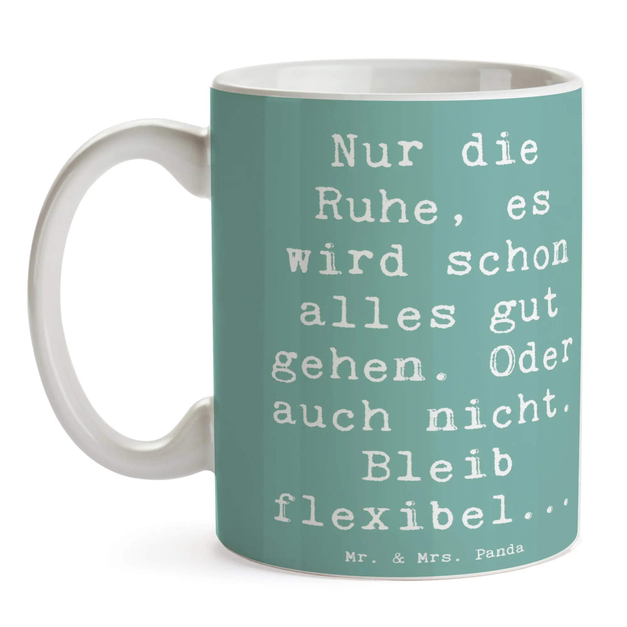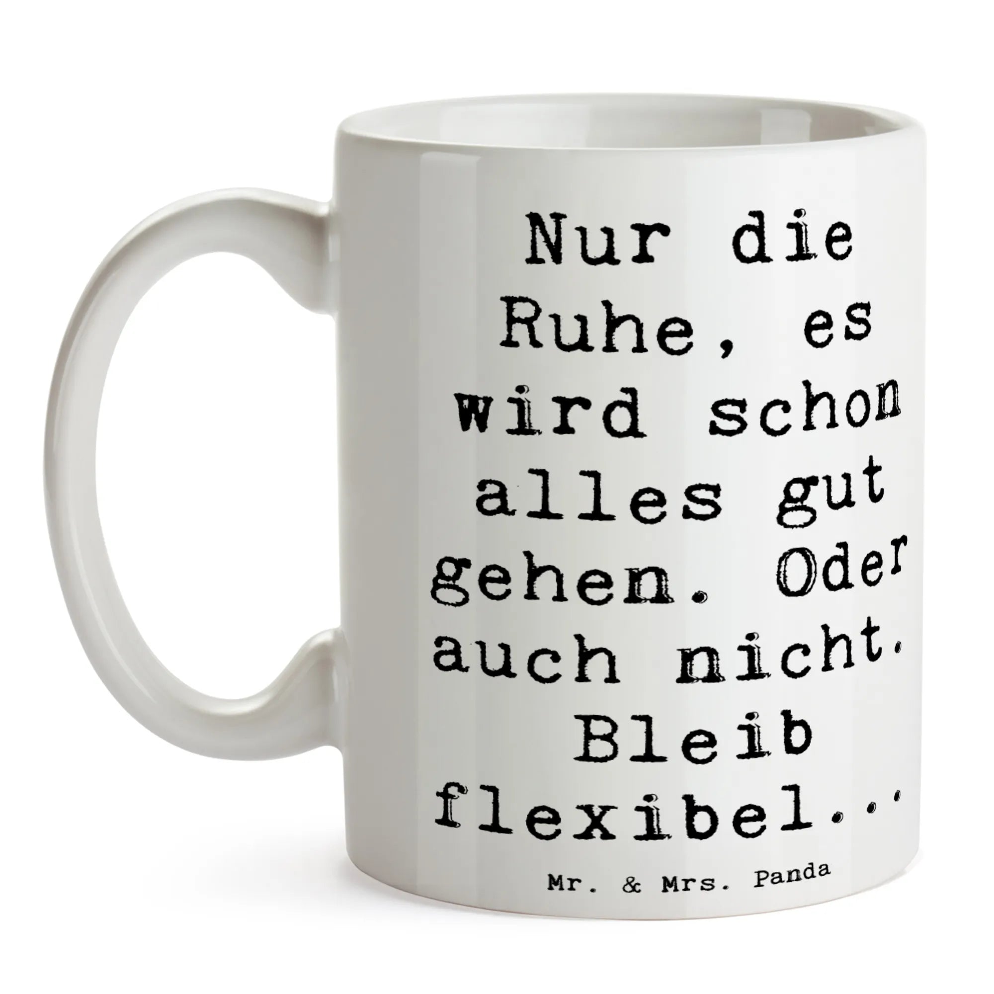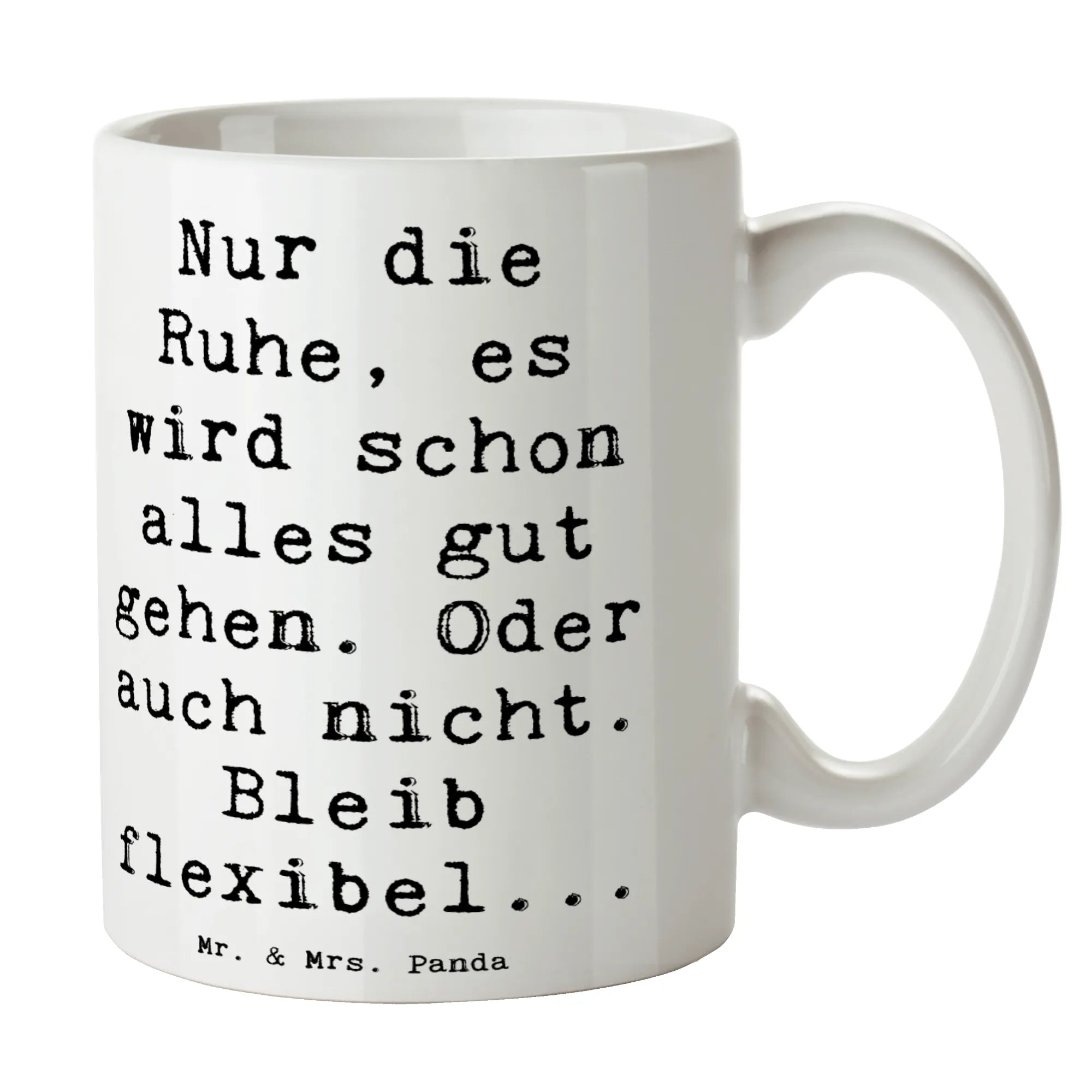 Mr. & Mrs. Panda Tasse „Gelassenheit in Krisen“ – die perfekte Kaffeetasse mit Spruch für alle Tage. Wenn der Alltag dich einholt, schenkt dir diese Tasse einen kleinen Augenblick der Ruhe und ein Augenzwinkern. Der liebevoll gestaltete Spruch „Nur die Ruhe, es wird schon alles gut gehen. Oder auch nicht. Bleib flexibel...“ ist ein Mutmacher und passt wunderbar zu Kaffee, Tee oder Kakao. ☕️