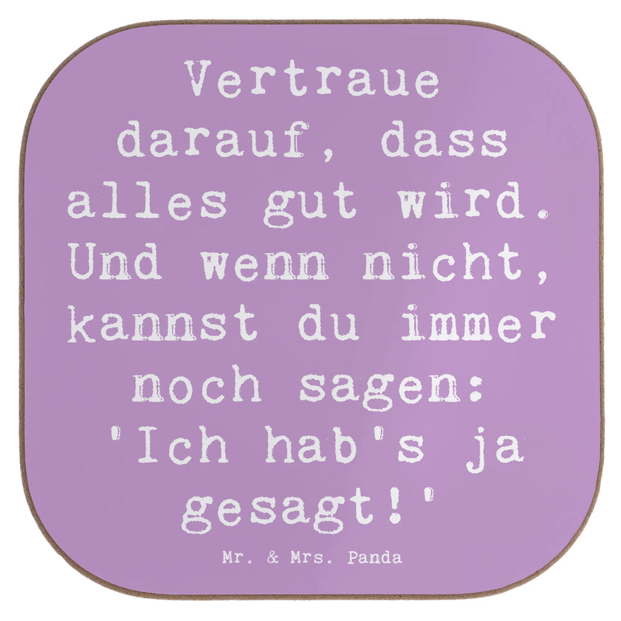 Dieser wunderschöne quadratische Untersetzer mit dem inspirierenden Spruch "Vertraue darauf, dass alles gut wird. Und wenn nicht, kannst du immer noch sagen: 'Ich hab's ja gesagt!'" ist mehr als nur ein Getränkeuntersetzer. Er schützt deinen Tisch vor Abdrücken, Kratzern und extremen Temperaturen, während er gleichzeitig für eine positive Stimmung sorgt. Perfekt geeignet für gemütliche Abende mit Freunden oder entspannte Nachmittage beim Kaffee.
