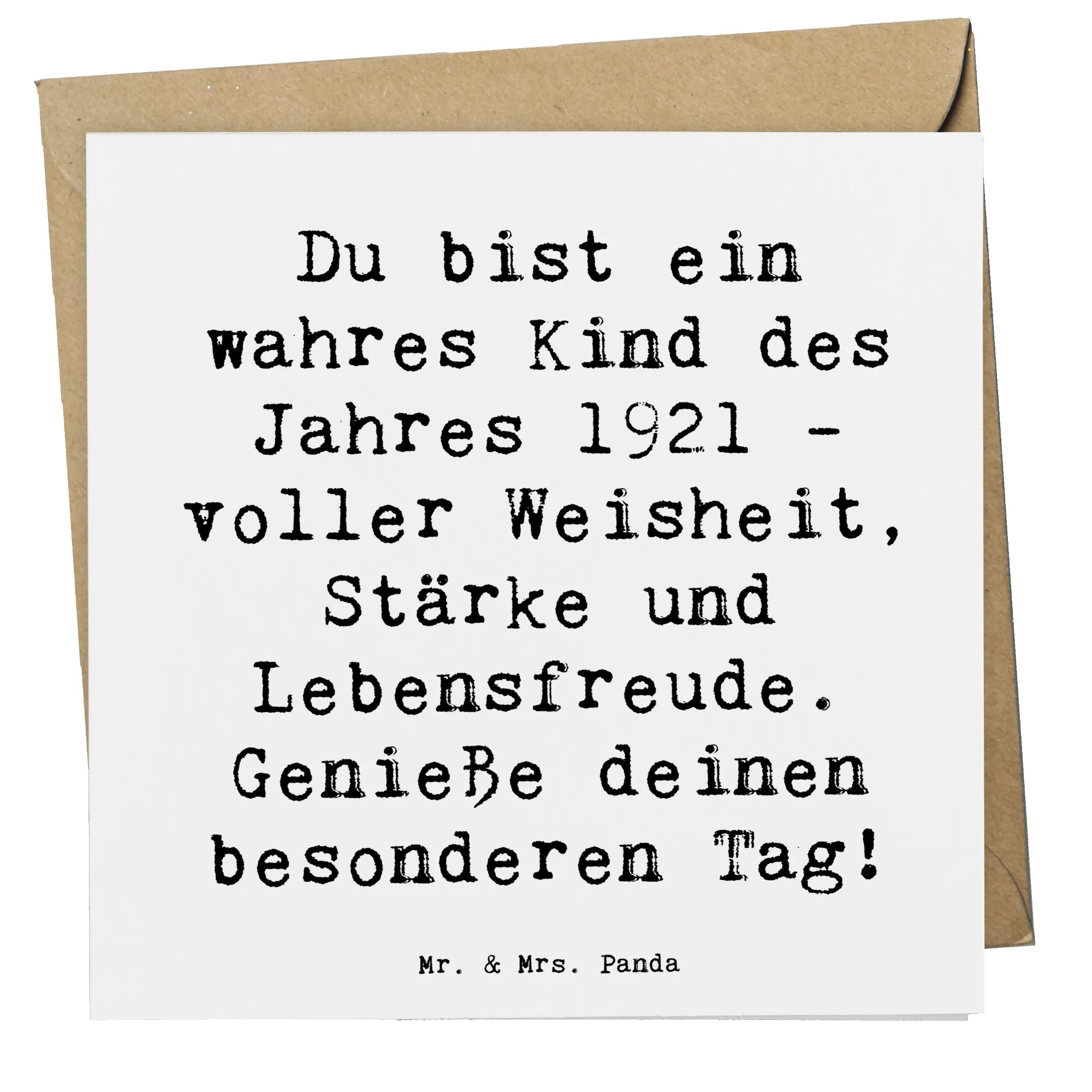 Die Deluxe Karte zum 1921 Geburtstag von Mr. & Mrs. Panda ist das perfekte Geschenk für jeden, der dieses besondere Jahr gebürtig feiert. Mit einem einzigartigen Motiv und einem liebevollen Spruch "Du bist ein wahres Kind des Jahres 1921 - voller Weisheit, Stärke und Lebensfreude. Genieße deinen besonderen Tag!" bringt diese Karte nicht nur Freude, sondern auch nostalgische Erinnerungen.