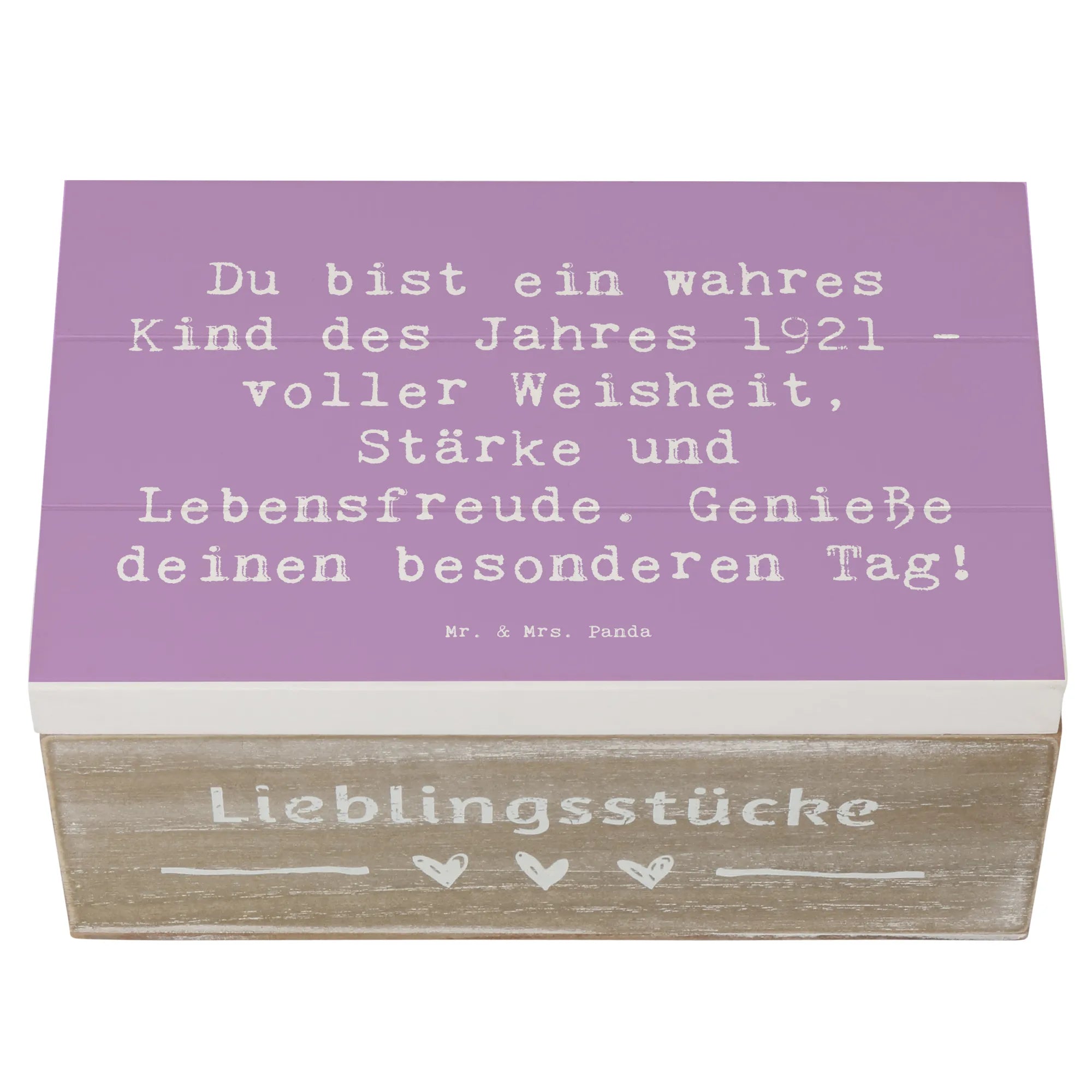 Die wunderschöne Holzkiste von Mr. & Mrs. Panda mit dem besonderen Motiv "1921 Geburtstag" ist das perfekte Geschenk für all jene, die in diesem Jahr geboren wurden und ihren Geburtstag gebührend feiern möchten. Diese Erinnerungskiste ist nicht nur ein praktischer Aufbewahrungsort für kostbare Schätze, sondern auch ein wunderschöner Blickfang in jedem Wohnraum.