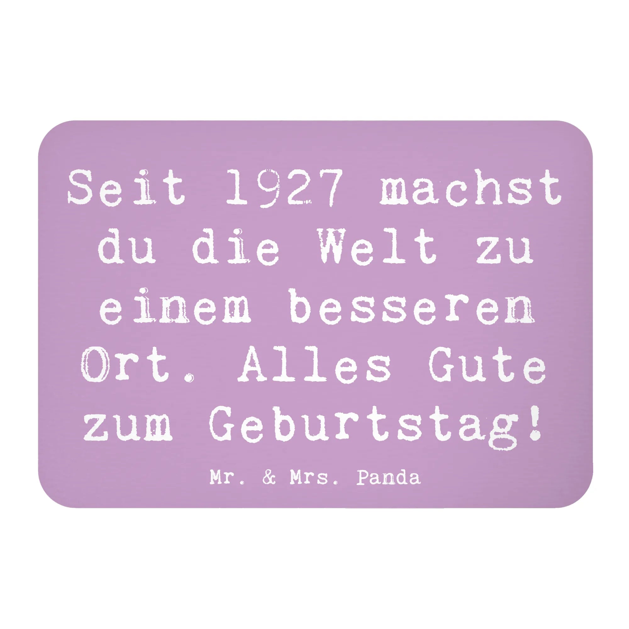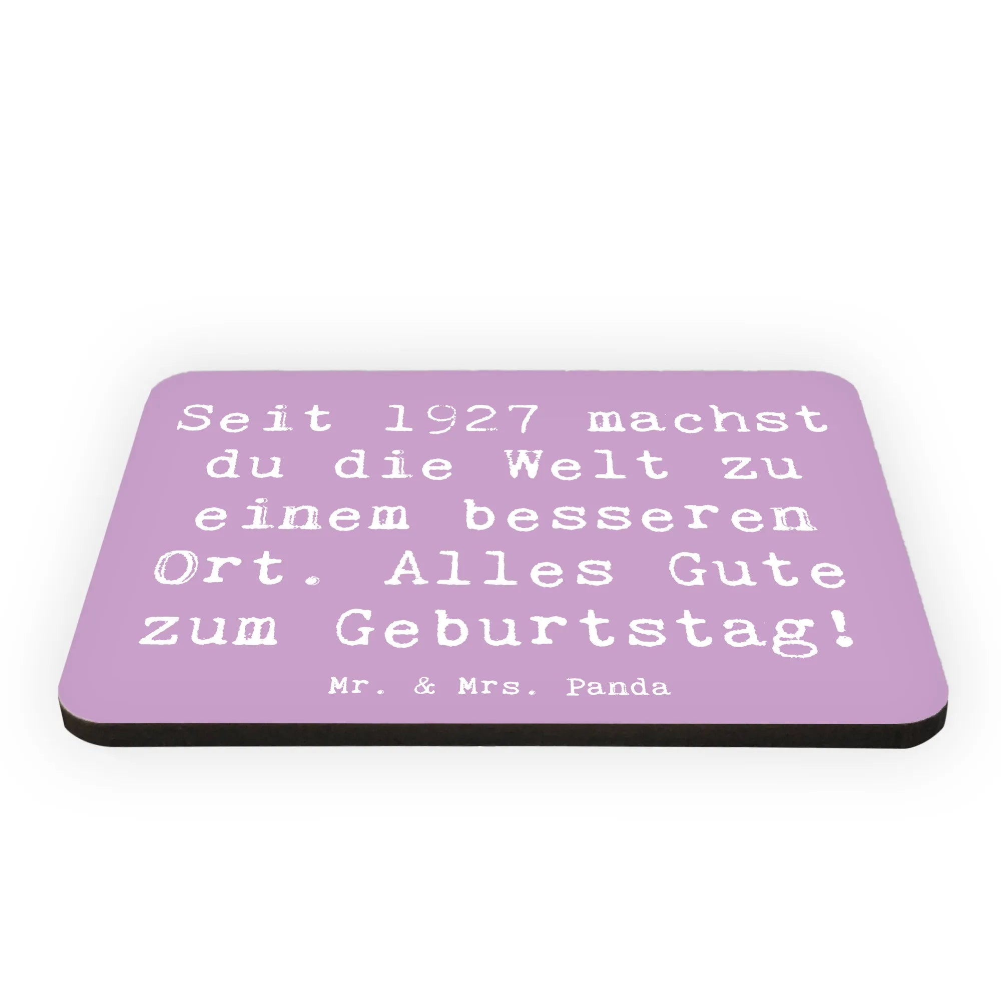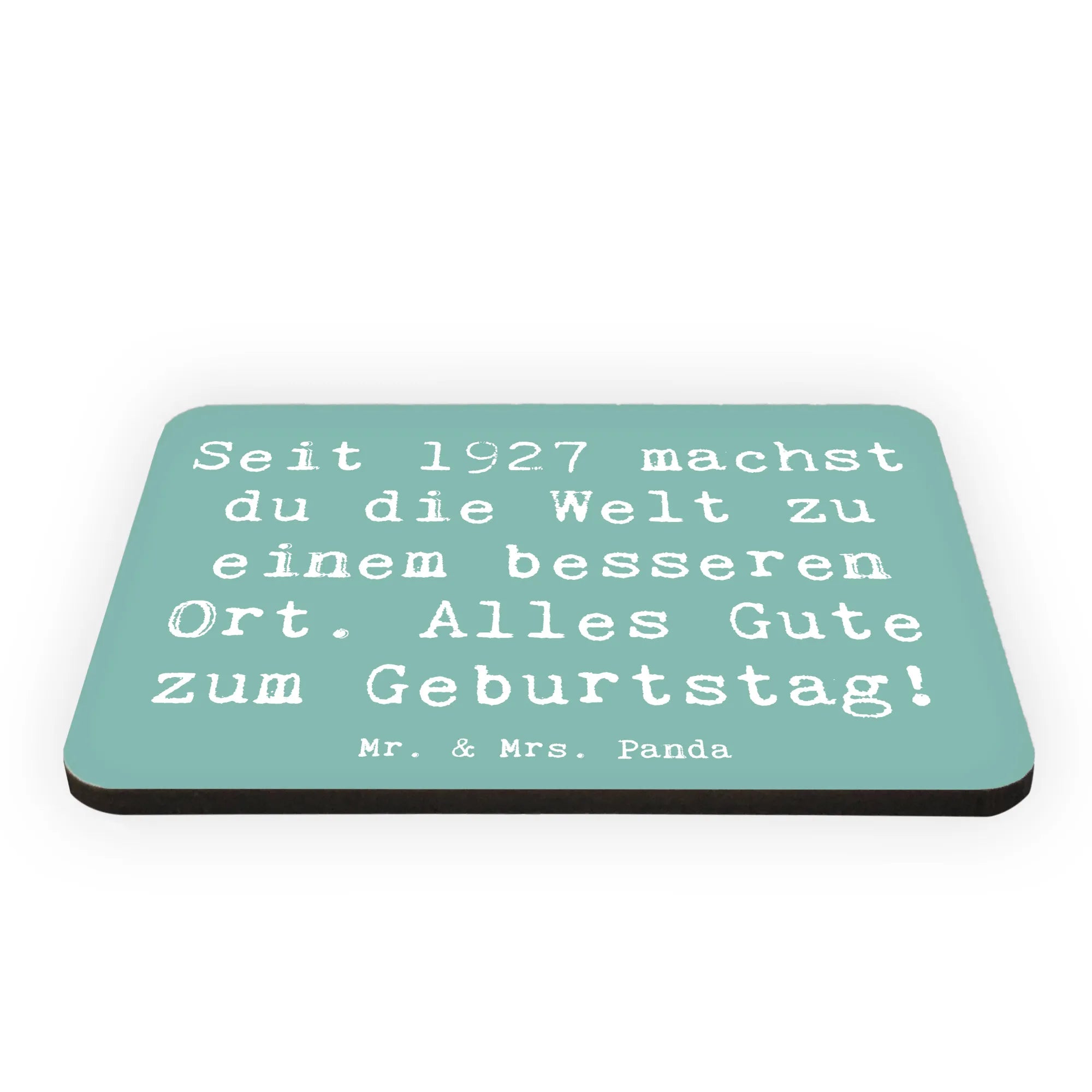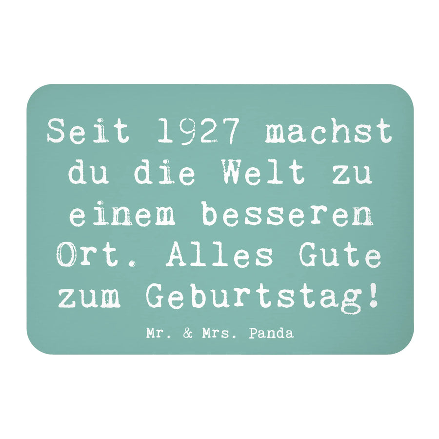 Entdecke unseren besonderen Kühlschrankmagneten aus der Lieferung von Mr. & Mrs. Panda, der mit dem süßen Motiv "1927 Geburtstag" und dem inspirierenden Spruch "Seit 1927 machst du die Welt zu einem besseren Ort. Alles Gute zum Geburtstag!" daherkommt.