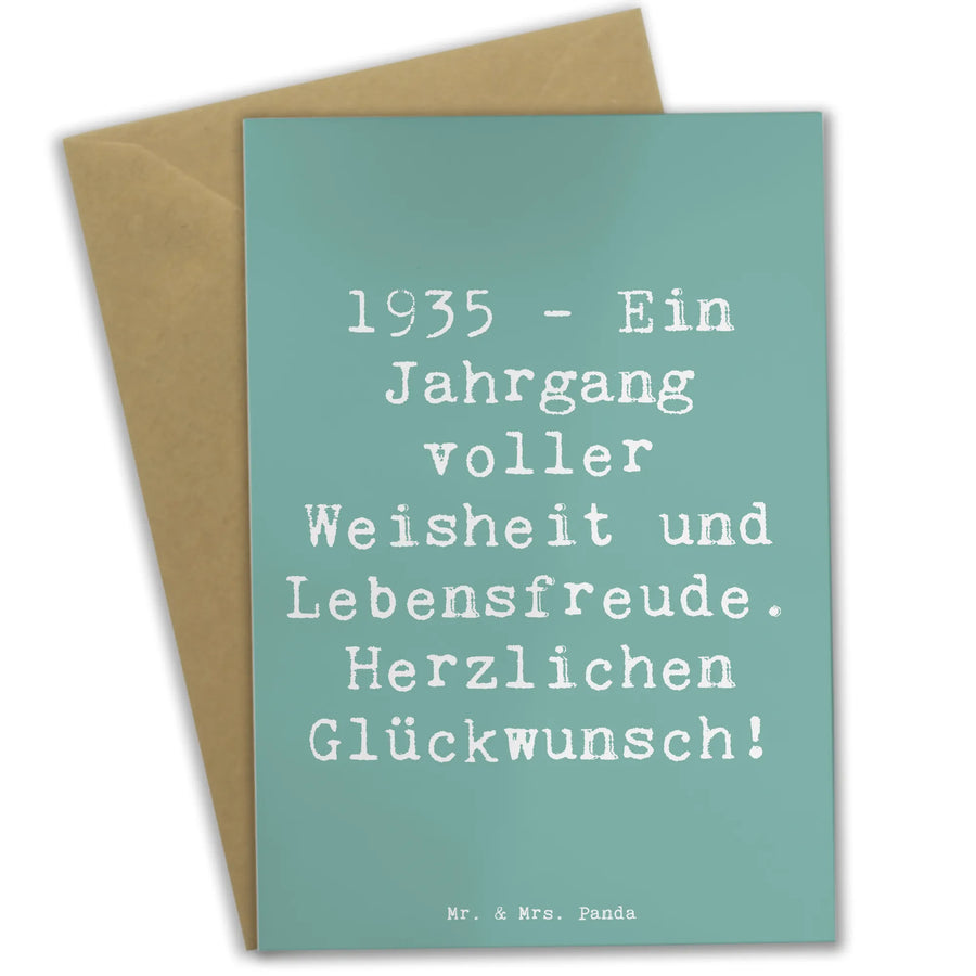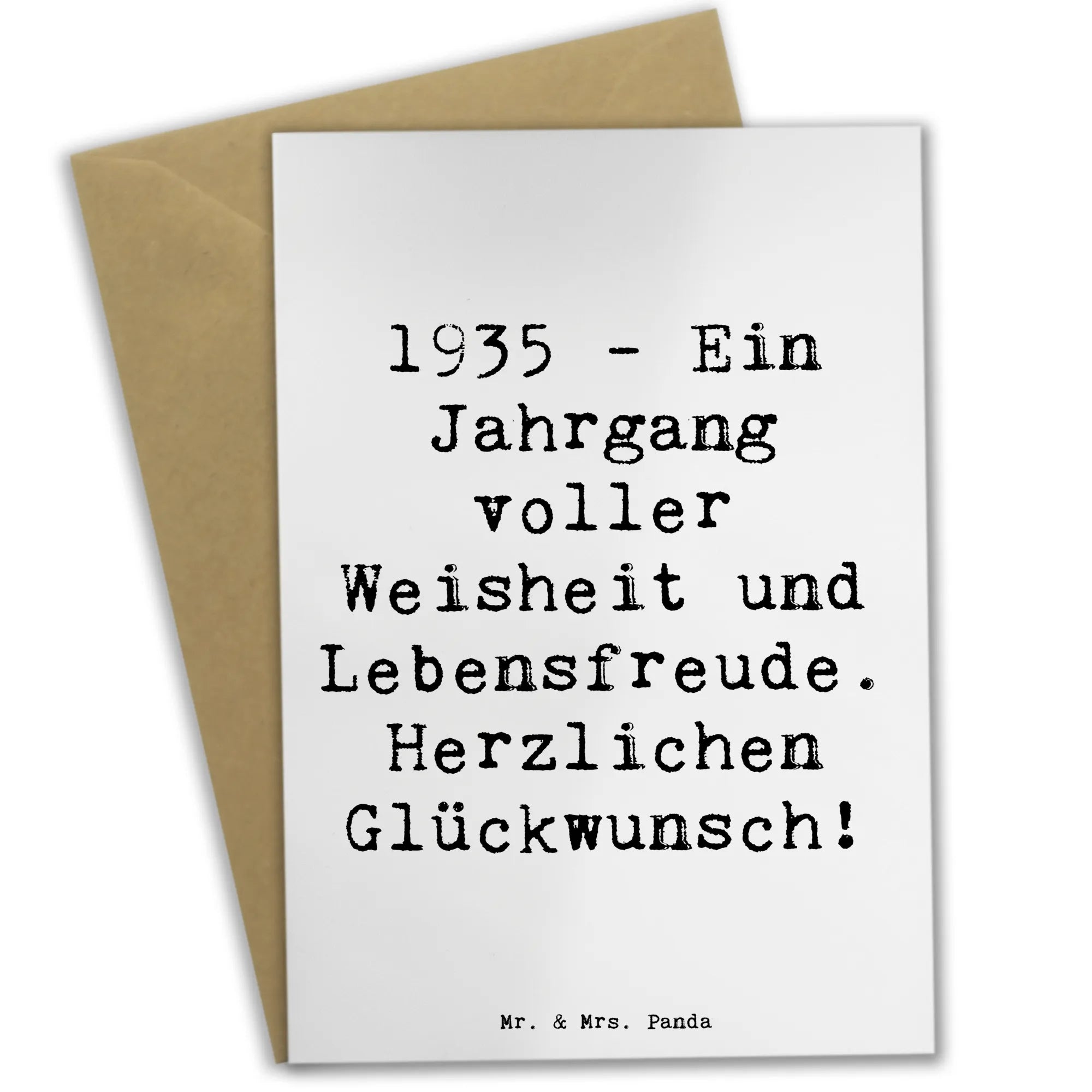 Feiere den besonderen Tag eines Geburtstagskindes mit der einzigartigen Grußkarte von Mr. & Mrs. Panda mit dem Motiv "1935 Geburtstag"! Diese wunderschöne und hochwertige Karte ist das perfekte Geschenk für alle, die in diesem legendären Jahr geboren wurden. Der Spruch "1935 - Ein Jahrgang voller Weisheit und Lebensfreude. Herzlichen Glückwunsch!" auf der Vorderseite bringt das Geburtstagskind garantiert zum Schmunzeln und strahlt positive Energie aus.