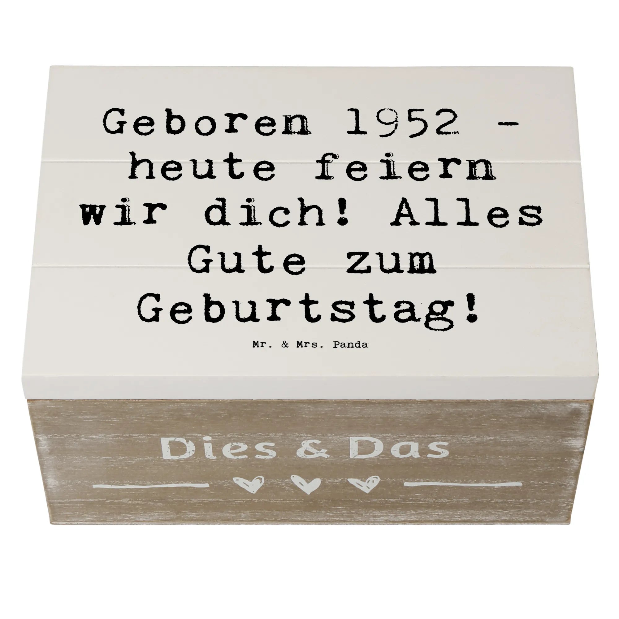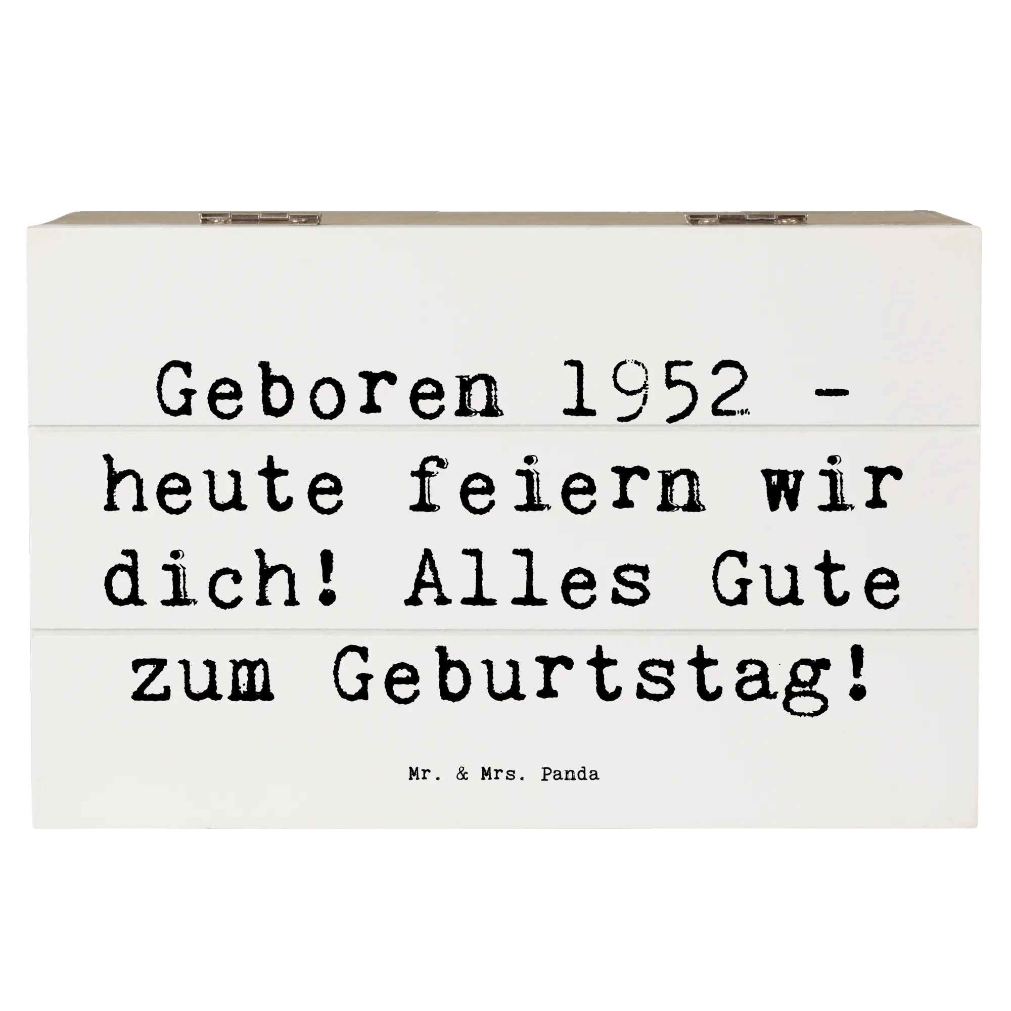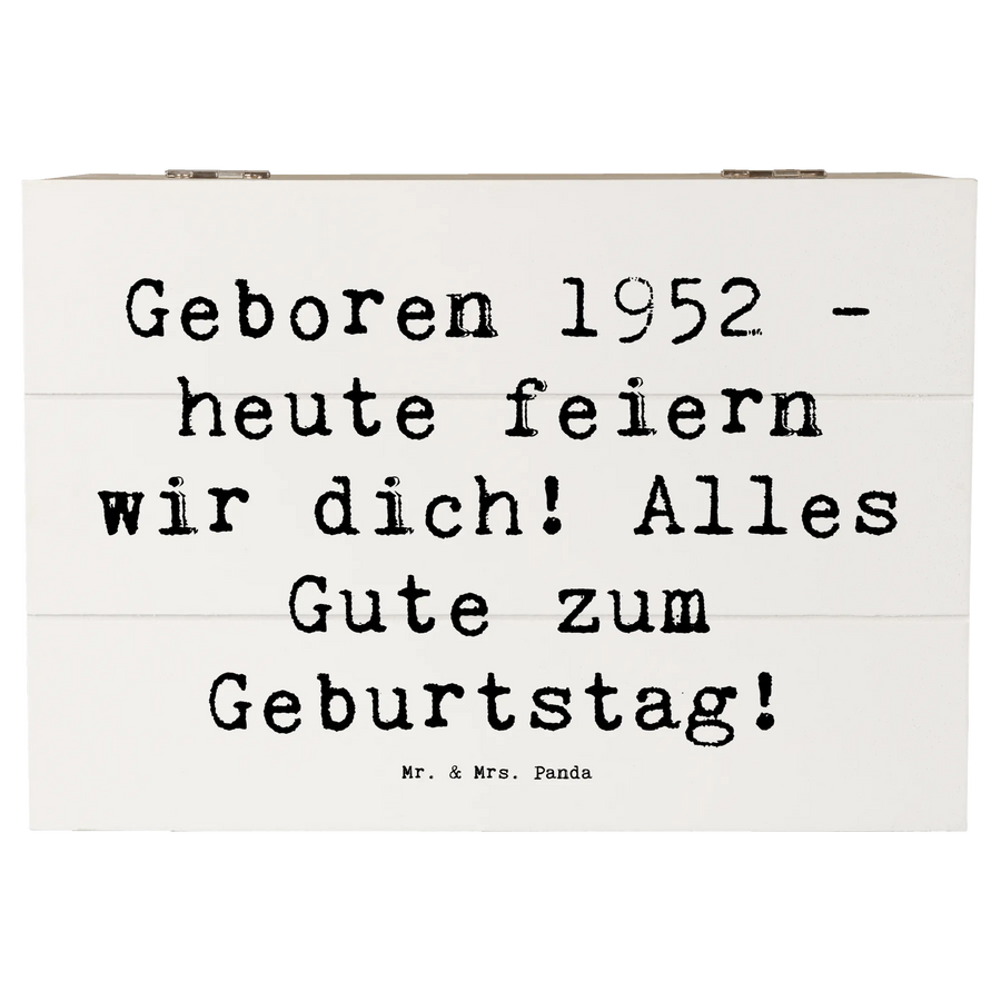 Die Holzkiste "Geboren 1952 - heute feiern wir dich! Alles Gute zum Geburtstag!" von Mr. & Mrs. Panda ist das perfekte Geschenk für alle, die einen besonderen Geburtstag feiern möchten. Diese wunderschöne Erinnerungskiste ist nicht nur ein dekoratives Element, sondern auch ein praktischer Aufbewahrungsort für all die Schätze, die das Leben über die Jahre gesammelt hat.