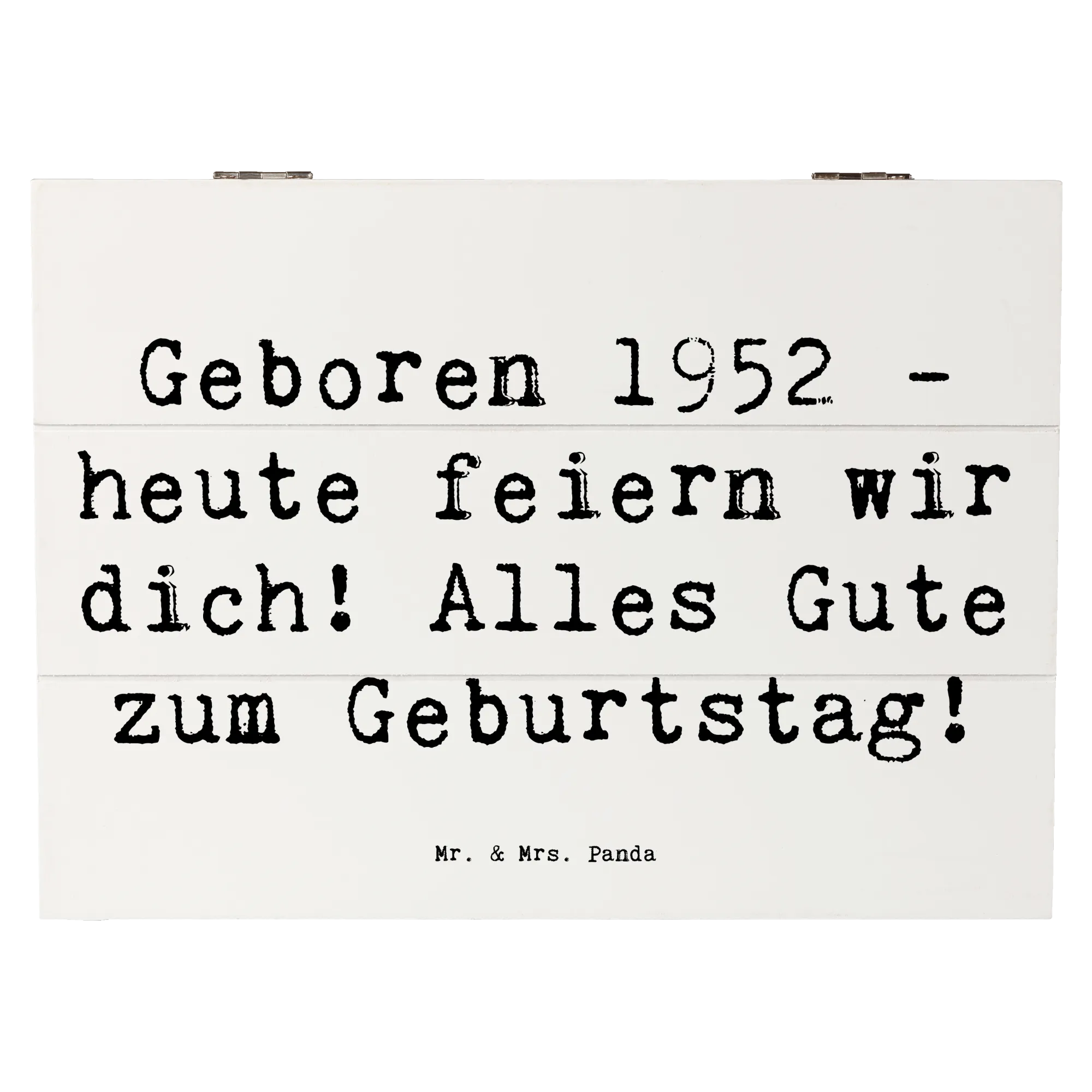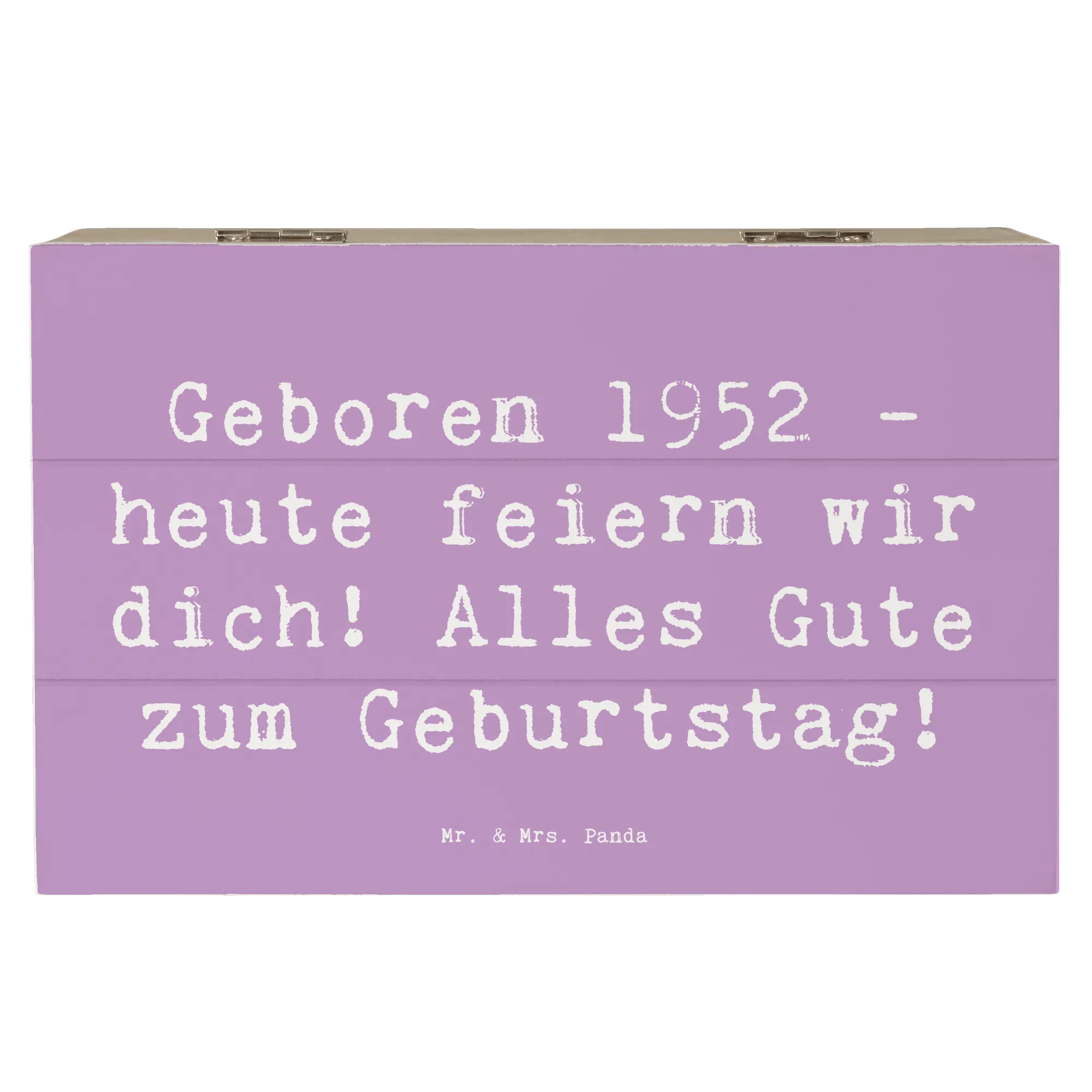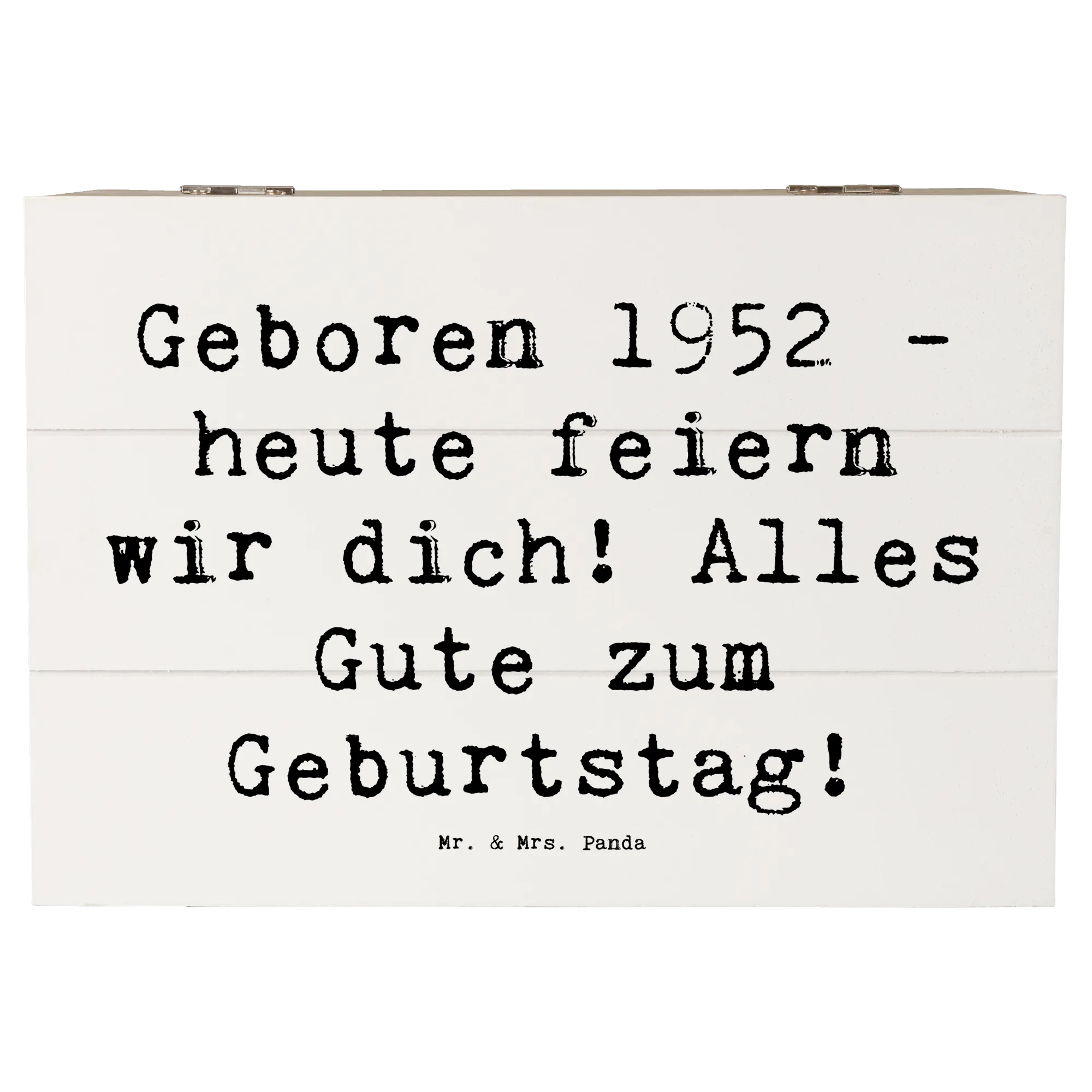 Die Holzkiste "Geboren 1952 - heute feiern wir dich! Alles Gute zum Geburtstag!" von Mr. & Mrs. Panda ist das perfekte Geschenk für alle, die einen besonderen Geburtstag feiern möchten. Diese wunderschöne Erinnerungskiste ist nicht nur ein dekoratives Element, sondern auch ein praktischer Aufbewahrungsort für all die Schätze, die das Leben über die Jahre gesammelt hat.