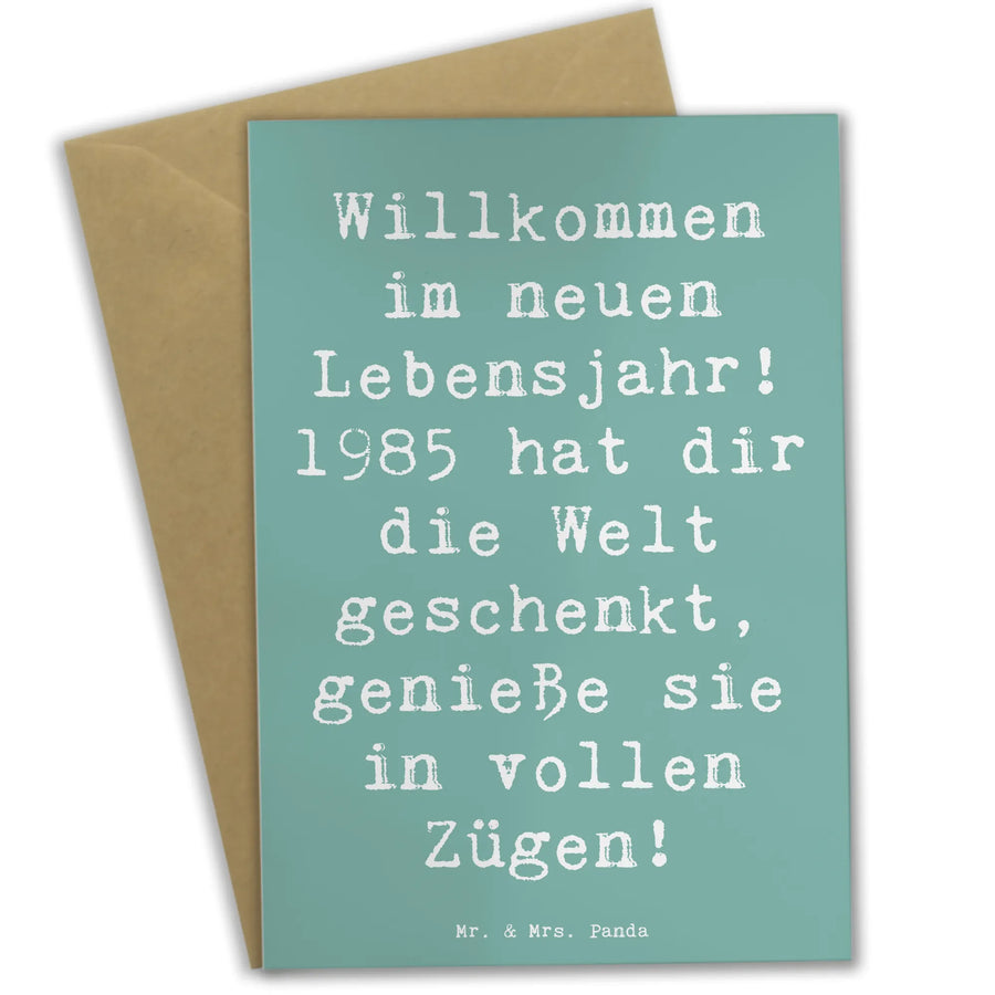 Unsere Grußkarte zum 1985. Geburtstag aus der zauberhaften Geburtstag Geburtsjahr-Kollektion von Mr. & Mrs. Panda ist der ideale Begleiter für alle, die diesen Tag gebührend feiern möchten. Die Karte kommt mit dem liebevollen Slogan "Willkommen im neuen Lebensjahr! 1985 hat dir die Welt geschenkt, genieße sie in vollen Zügen!" und sorgt garantiert für strahlende Gesichter.